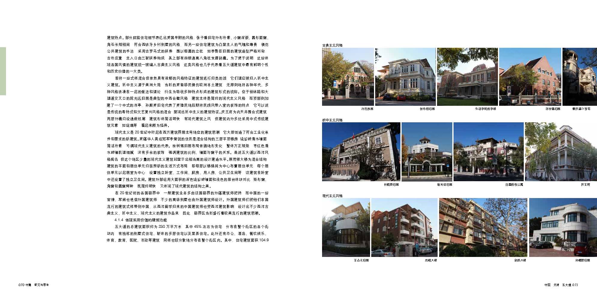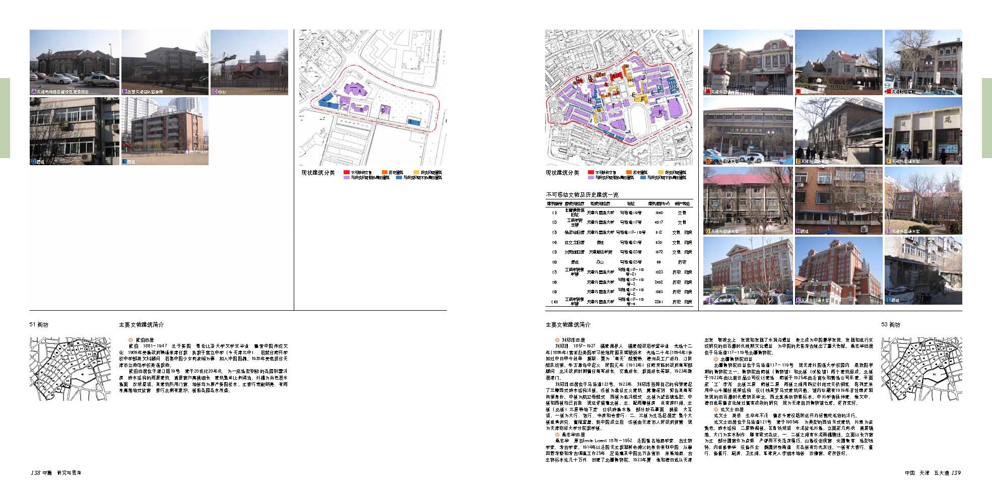 五大道是天津市十四个历史文化街区中规模最大、保存最完好的街区。这片增经的英租界高档居住区延续了英国城镇体系的一系列做法,邻里花园、学校、公共设施、体育场地分散设置在居住街区内,可亲可触,体现了亲近邻里的设计初衷。想要继续维护这种氛围,更加深刻地理解五大道地区在过去上百年间发展出了哪些因素、格局和特点从而造就了这种生活品质是必不可少的。五大道历史上一些约定俗成的关系结构和空间特点集中反映在建筑类型、街廓肌理、街道与街巷三个方面,这也是《中国•天津•五大道:历史文化街区保护与更新规划研究》(简称《中国•五大道》)能够在五大道的保护和更新工作中激发理性的设计思维、具有一定参阅价值的意义所在。当改造和重建行为发生时,此类研究尤为重要。