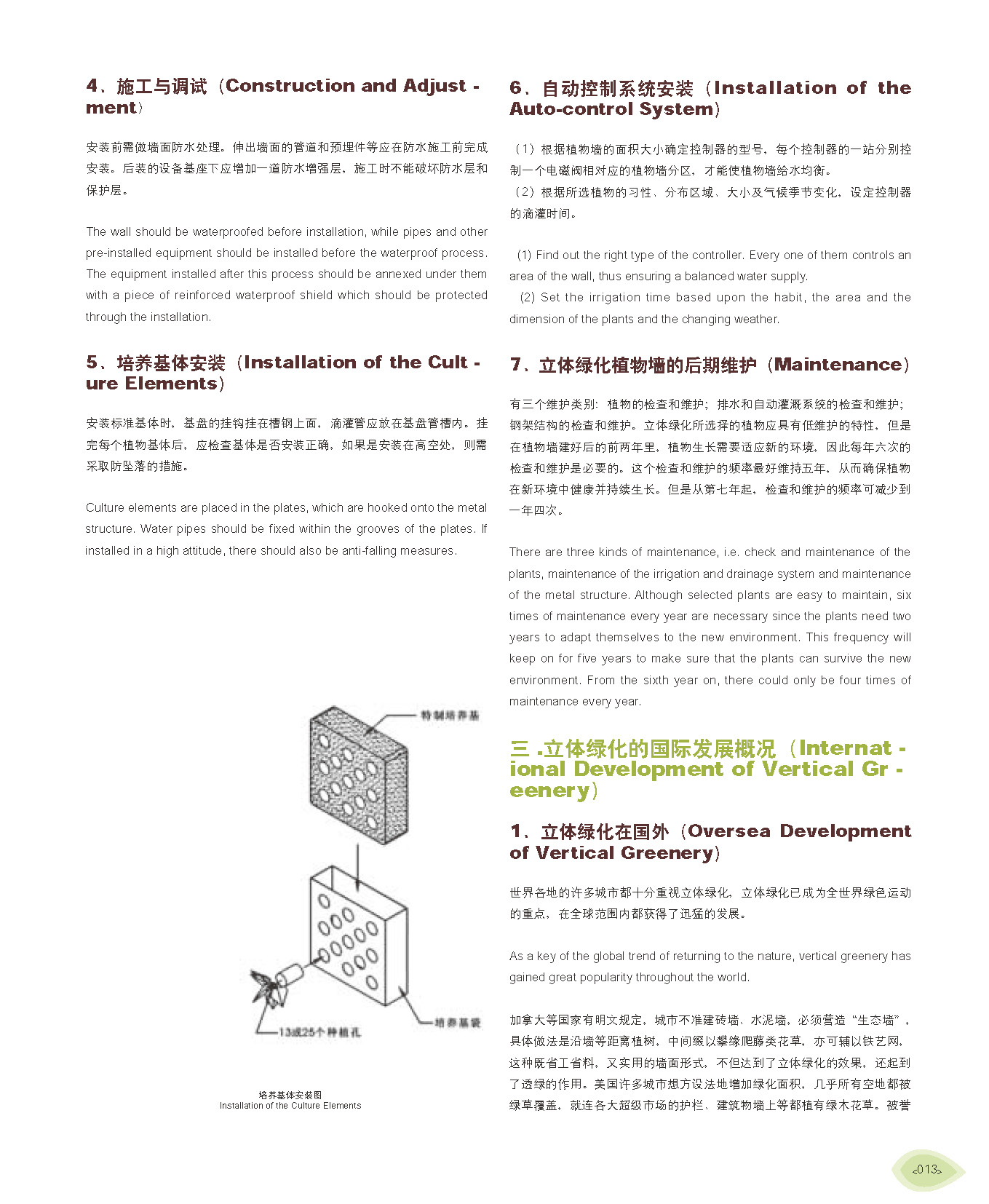 《垂直绿化》是一本全面介绍垂直绿化系统的专业图书,通过绿化装置、植物配置、灌溉系统、自动控制系统安装、施工与调试和后期维护等方面,系统地向读者介绍国内外先进的垂直绿化方式,包括水培式、模块式、花槽倾斜式和框架牵引式及其他。同时精选国外优秀案例,配以专业的设计施工图纸,由设计师从设计难题、装置结构、灌溉、植物配置、植被构成等方面展开描述,帮助读者清晰明了并深入地了解各种垂直绿化系统。该书在向读者介绍各种垂直绿化系统之余,还将实践与理论相结合,旨在实现推进垂直绿化在国内发展的目的。