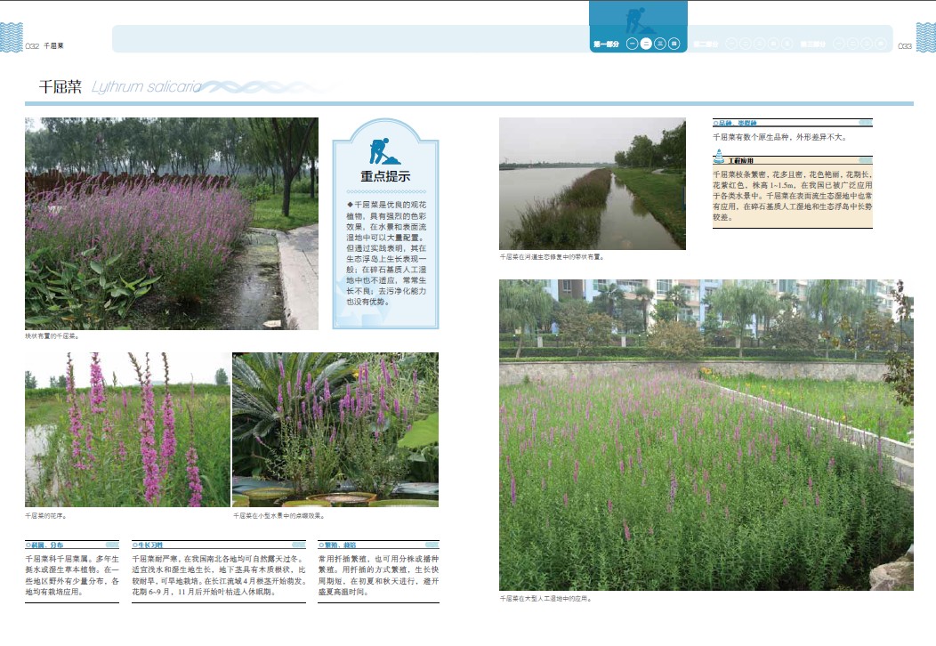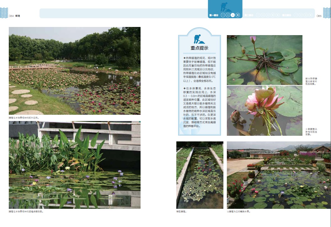 第三部分“水生植物在水体景观中的应用”,细分为“小型水景”、“湿地公园”和“水生专类园”3个应用领域。