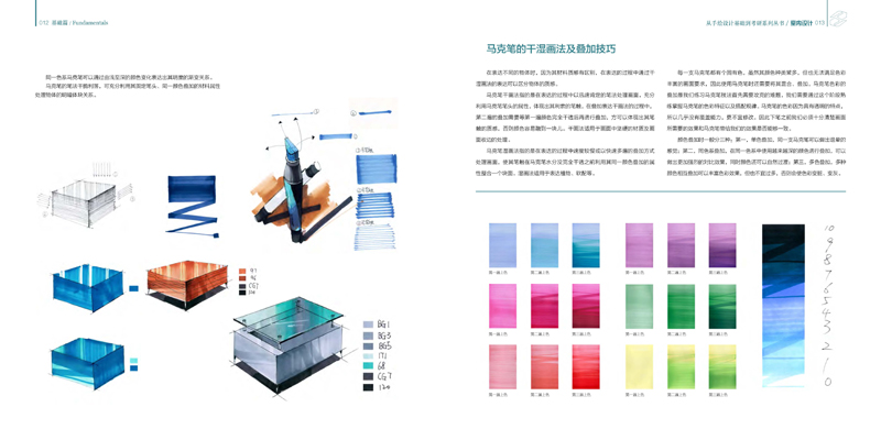 1:基础篇(内容包括基础单体配景、马克笔的基本笔法、各种配景、植物、配饰的表达技巧)