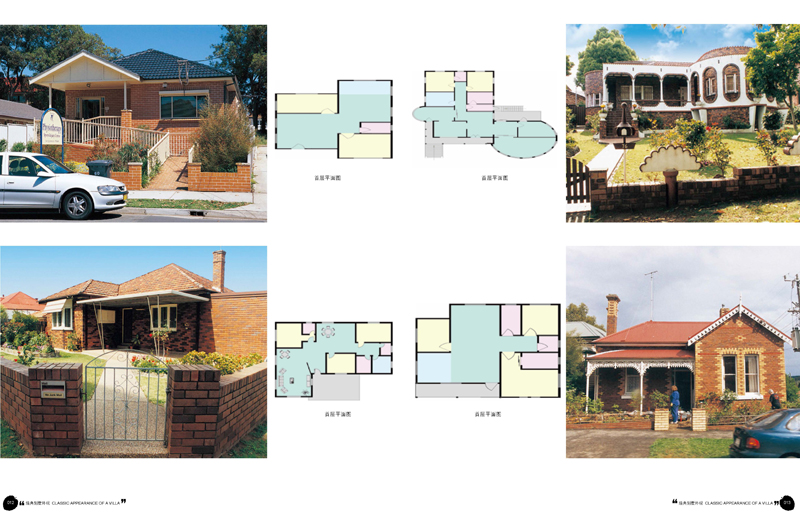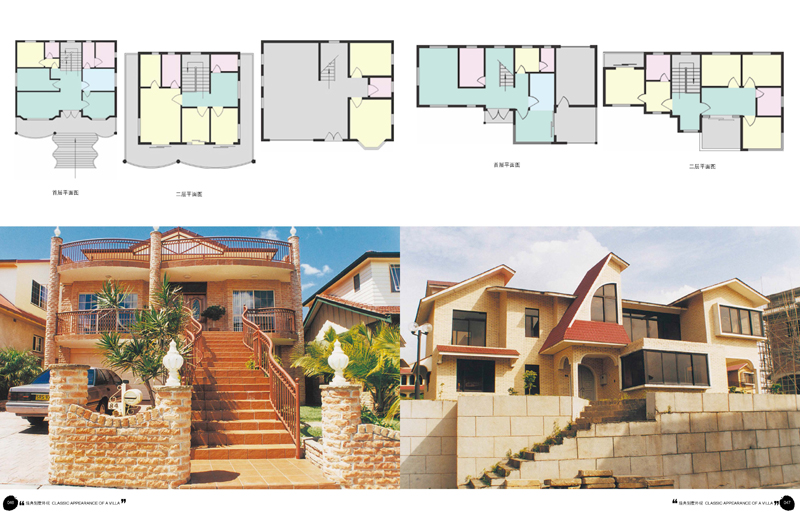 本书收录了国外和国内的别墅图样约800例,除多角度外观图的直接展示外,有些还配附了各楼层的平面设计图,希望尽量给读者展示一个较为完整的效果。这些别墅实例,既有简洁大气、集各种建筑精华于一身的北美风格别墅,又有尽显豪华、富有古典神韵的欧洲风格别墅,也有外观色彩亮丽、造型美观的澳大利亚风格别墅,还有体现中西文化结合的本土别墅等。