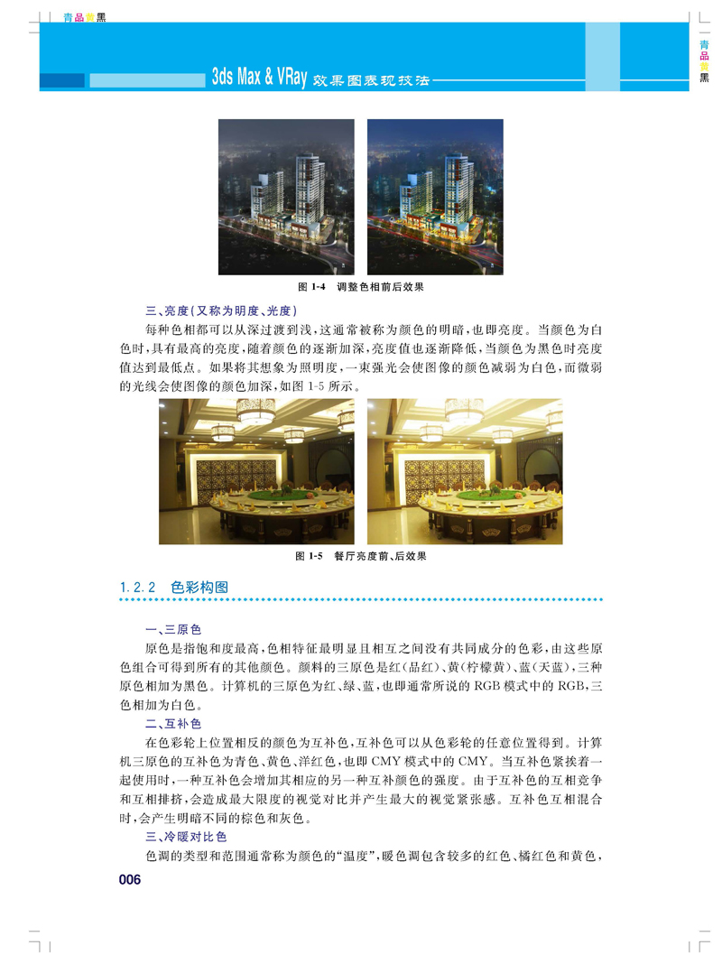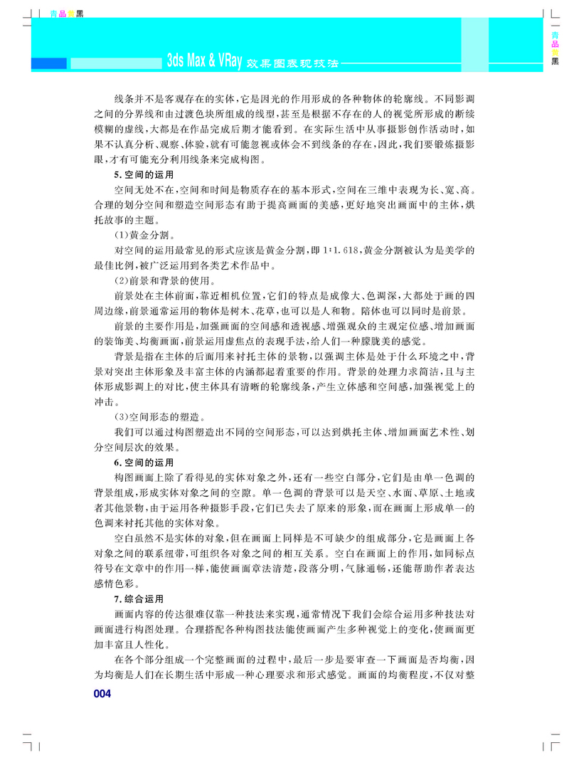 《3ds Max&VRay效果图表现技法》包括了不同类型的室内空间表现,有家装空间,如客厅、书房、卧室、卫生间等;有工装空间,如接待室、售楼大厅、走廊等;还有3个典型的室外效果图表现等。通过学习不同空间、不同气氛的表现方法,以及不同材质的设置技巧,不同的布光思路和创建流程,读者可以全面提高室内外空间表现功底与水平,轻松制作出照片级别的三维作品。