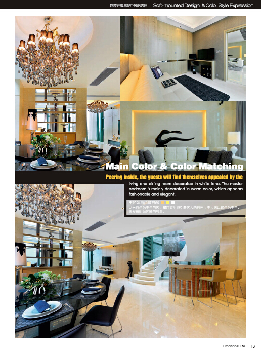 本书围绕软装元素的风格表达,从室内设计的立意、构思,到室内风格和环境氛围的创造,注重对环境整体、文化特征以及建筑物的功能特点等多方面的考虑,带领读者,随着生活情感体现的主线,领略最新室内设计的深度和魅力——如何运用洗练的设计语汇,如何搭配极具质感的材质,如何运用沉稳优雅的色调,如何形塑空间的大气感。