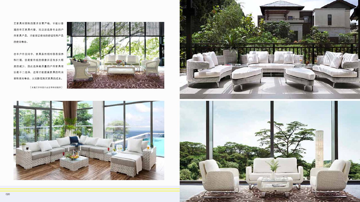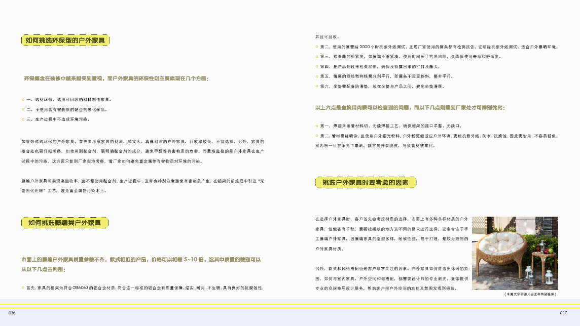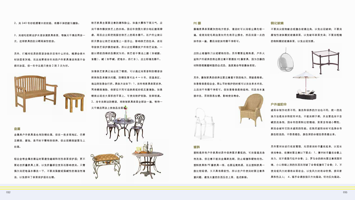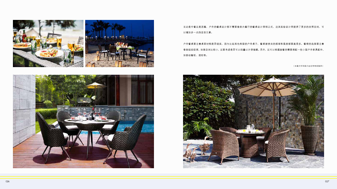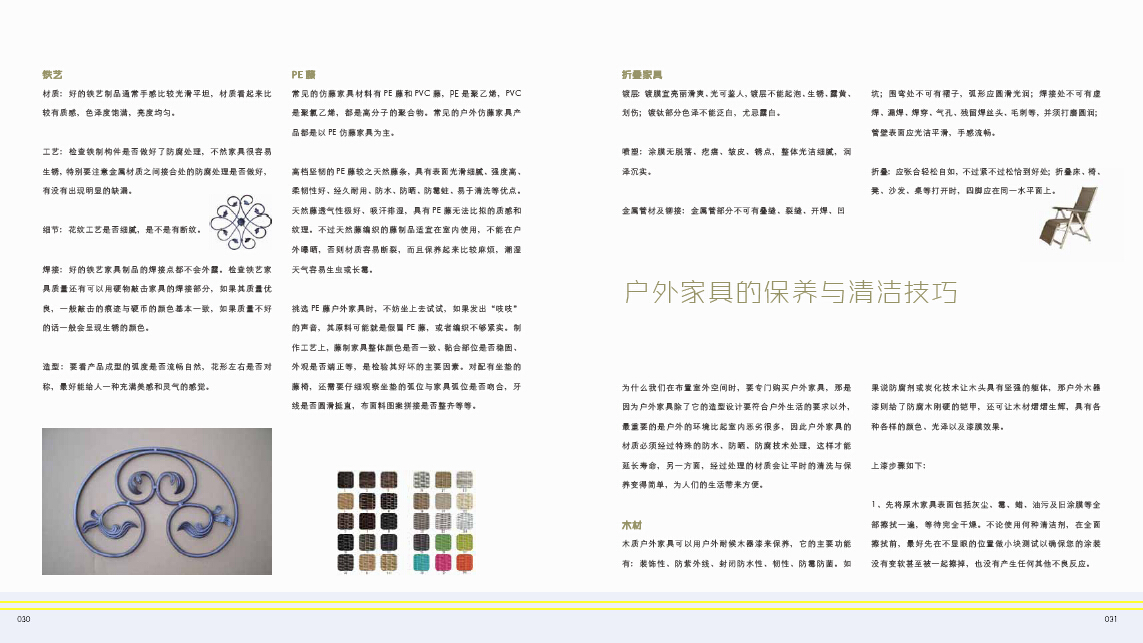2.精准文字搭配高清图片的方式,讲解室外家具搭配的历史、分类、材质、保养等,使读者对主题有更全面和深入的认识。
