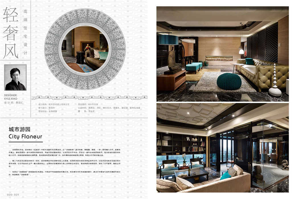 海德格尔曾经说过:“安居是凡人在大地上的存在方式。”居所作为人们安身立命的“港湾”,一直都被视为生活质量的象征。随着社会经济能力的不断提高,人们的精神境界也随之提升,从注重物质逐渐走向追求精神,现如今,人们对于居所的追求亦不再仅限于“一掷千金,穷奢极华”地将各种奢华的风格填充其中。渐渐的,以“低调”、“优雅”、“舒适”、“不累赘”为特征的轻奢风开始走进高端住宅设计领域,并有指引室内设计风向的趋势。近两年来,轻奢风几乎已成为一个专业的风格领域,不少轻奢风设计机构、设计师也声名鹊起,成为室内设计界备受关注的人物。轻奢风的住宅设计,或低调奢华、或优雅恬静、或洋溢着自然人文的气息……异彩纷呈的现代人文生活方式令人着迷。