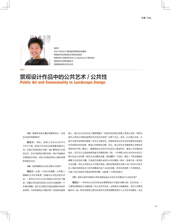 一本以“环境设计和公共艺术”为主题展开的关于公共艺术的形式以及表现方法的讨论和探讨。大多数人理解的公共艺术就是“放置在公共空间的艺术品”。其实这个定义太过于局限公共艺术这个概念。但真正深究起来其实公共艺术本身就是一个矛盾的课题。因为艺术是艺术家自我意识和创作的表现,又如何展现公共意志呢?但放到实践层面上,我认为公共艺术至少要被理解为“在创作的过程及含意上具有公共性,同时在陈列上具有公共群众轻易的可及性及开放性”这两个定义。当然,什么是公共性,又或什么是开放性都可能要一本专书才能讲完,但简单来说公共艺术应该是创作者透过艺术表现形式来诠释、展现公共群体的议题、记忆,或公共艺术本身就是公共群体共同创作的产物。事实上,最高明的公共艺术不仅仅可以被动衬托,展现人与环境间的结合,它还可以主动地将使用者与环境联结在一起。一件有野心的公共艺术作品可以提升社会大众对某一特定公共议题的注意,进而翻转一个空间,甚至一个特定族群的凝聚力及自发的力量。又或者它自身也会成为公共议题的一部分,或者引发一系列的公共议题,并让公共性在这个过程中显现。例如法国涂鸦艺术家Julien Malland去年在上海的老里弄动迁工地中的壁画引起了公众的注意,却也另老里弄一夕间被拆光, 凸显了动迁在城市中造成的种种问题,这就是一个很好的例子。