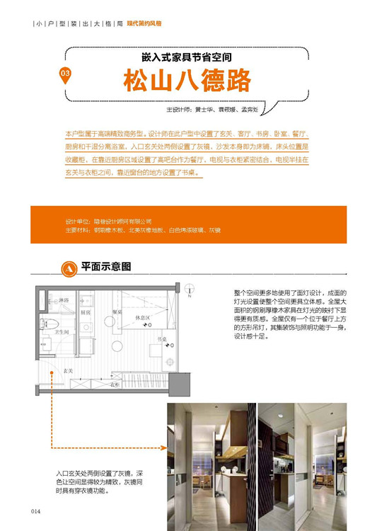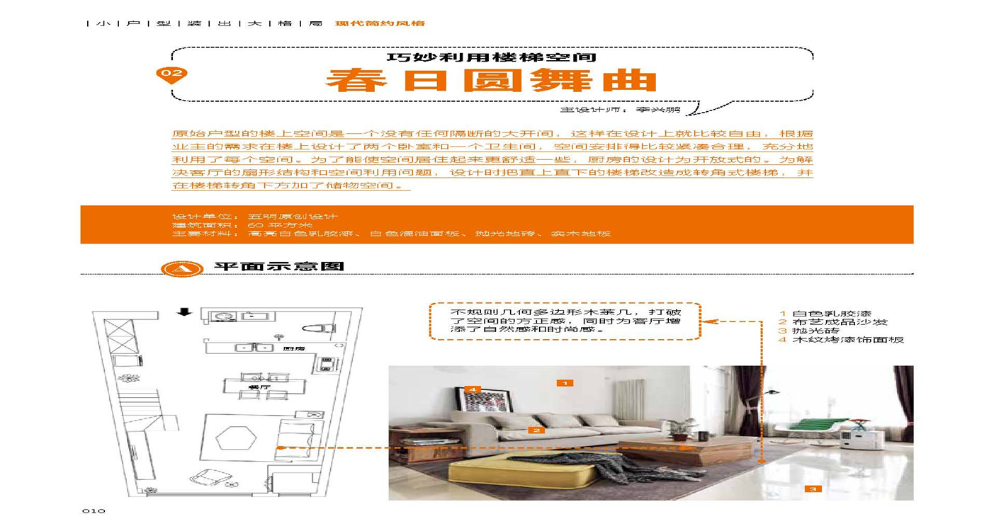 本书将通过精选的22个设计案例,为读者详细地解说现代简约风格的室内设计。每个设计案例都会包含平面图与设计案例完成后的实景图,并且对实景图中的设计材料进行了专业说明。这样对业主来说更直观、全面,也可以成为一本拿在手里的装修宝典。作者从功能要求、空间布局、颜色搭配、材料选择以及氛围的营造等方面入手,针对每个案例进行了图文并茂的详解。这些风格迥异的案例,不仅能使读者了解现代设计师对小空间的美学营造以及设计巧思,而且还能使其掌握设计的发展动向与潮流。通过不同案例剖析现代简约风格设计理念与方法不但能使空间得到最大化的利用而且还能带来视觉上的享受,这也就是人性化的实用设计。详尽、专业、全面又有针对性的小户型风格设计案例,是这本书的最大亮点。