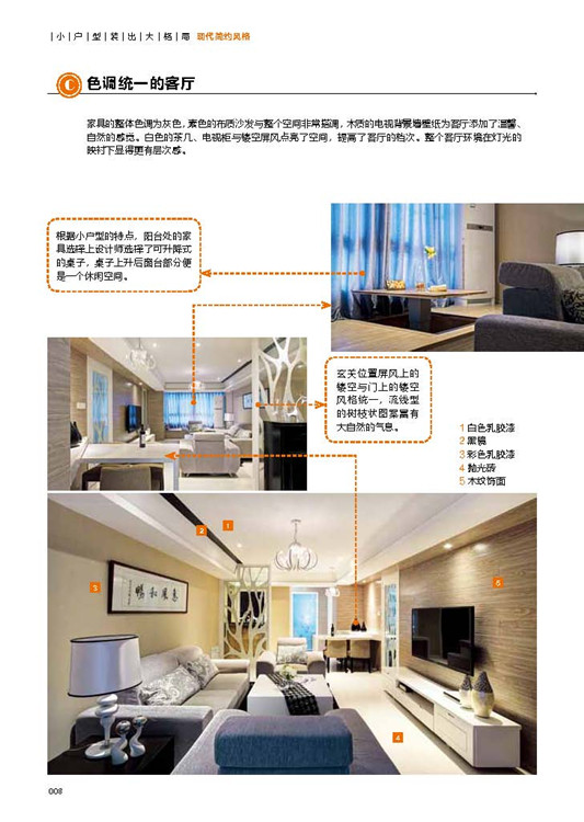 这本书主要收录的是当下非常流行的小户型家居设计,其实做家居设计主要满足三种需求——行为需求、视觉需求和心理需求。行为需求是指人在生活中必备的功能需求;视觉需求是指色彩、材质的搭配所形成的和谐的视觉效果;而心理需求主要是一种潜意识和无意识的需求。本套《小户型装出大格局》系列丛书非常实用,集聚了全国各地中坚力量的青年设计师的优秀作品。作者从功能要求、空间布局、颜色搭配、材料选择以及氛围的营造等方面入手,针对每个案例进行了图文并茂的详解。这些风格迥异的案例,不仅能使读者了解现代设计师对小空间的美学营造以及设计巧思,而且还能使其掌握设计的发展动向与潮流,更重要的是通过对一个个真实的小户型案例的参考与借鉴,设计师们能打造出更宜居和人性化的幸福空间。
