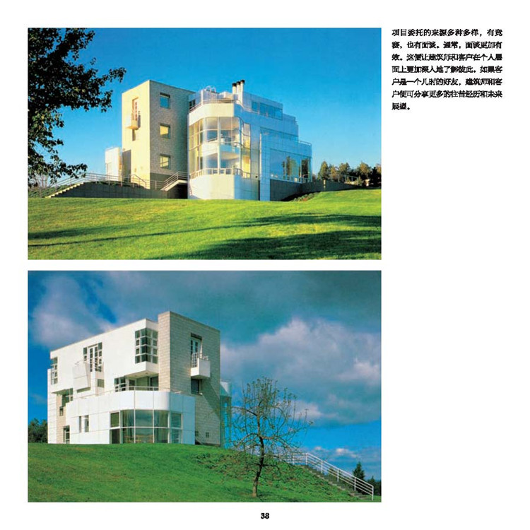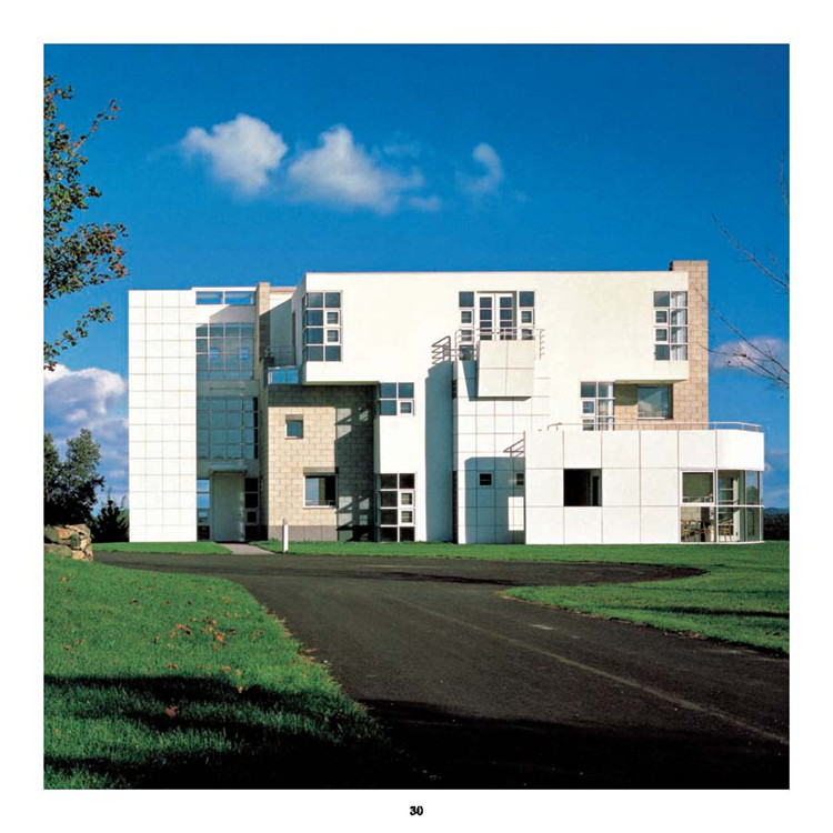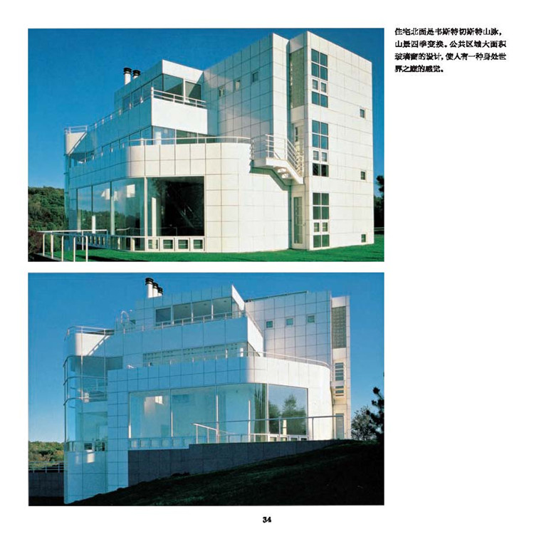 理查德·迈耶丛书共计六卷,收录了理查德·迈耶以及迈耶工作室近50年来的全部设计作品。迈耶设计的产品都颇为简练,既包括居家设计也包括商用设计。他设计的作品最大的特点是永远有自己的特性而不是在风格上受别人的影响而迷惑。由于其大胆的风格和值得称颂的忠诚,迈耶创造出颇为独特的粗壮风格。为了在展示方面做得更好,他将斜格、正面以及明暗差别强烈的外形等方面和谐地融合在一起。迈耶的作品以“顺应自然”的理论为基础,表面材料常用白色,以绿色的自然景物衬托,使人觉得清新脱俗,他还善于利用白色表达建筑本身与周围环境的和谐关系。在建筑内部,他运用垂直空间和天然光线在建筑上的反射达到富于光影的效果,他以新的观点解释旧的建筑,并重新组合几何空间。