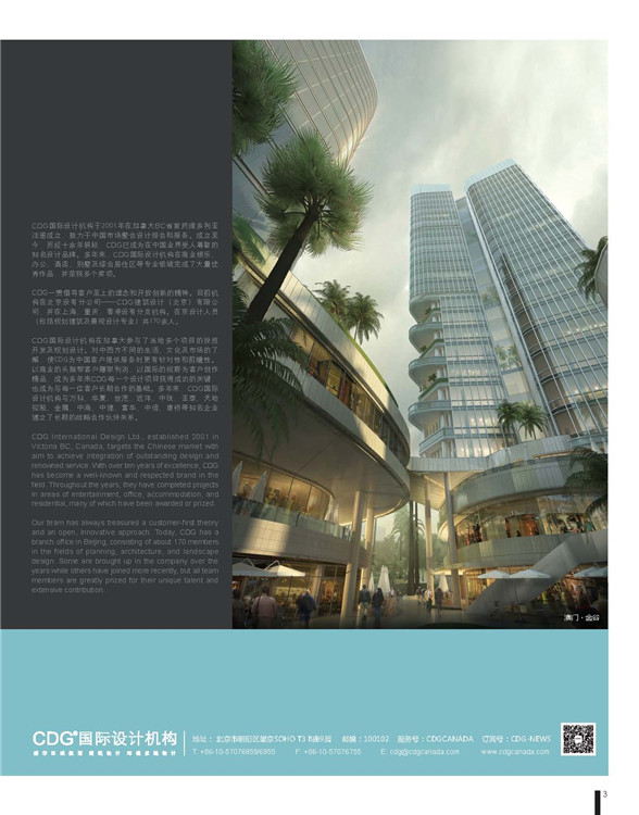 CDG一贯倡导客户至上的理念和开放创新的精神。目前机构在北京设有分公司—CDG建筑设计(北京)有限公司,并在上海、重庆、香港设有分支机构。在京设计人员(包括规划建筑及景观设计专业)共170余人。