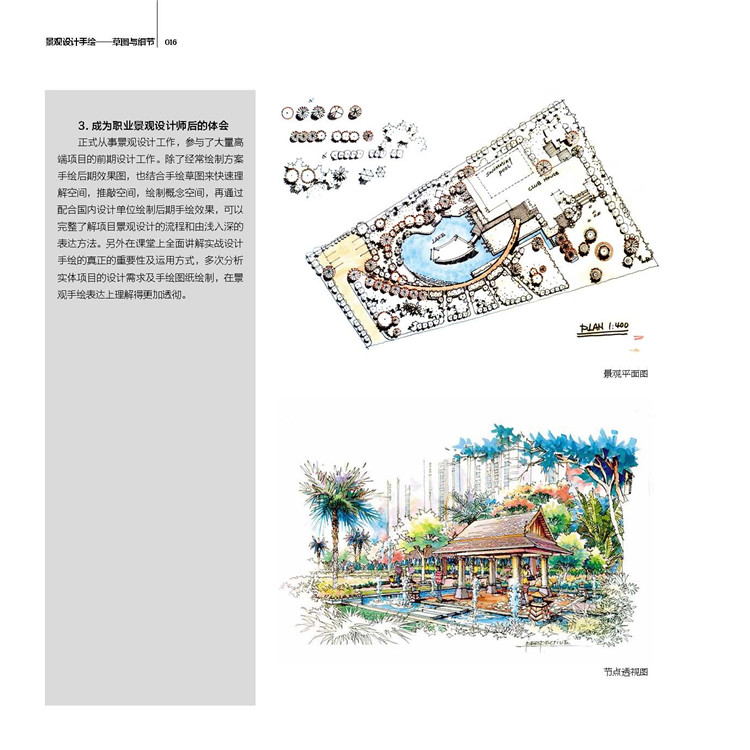 景观专业手绘图书一向都深受读者欢迎,尤其是设计专业学生的喜爱,很多学生将手绘技法作为步入工作前和考研考博的基本技能,多数人都热爱参考和练习。随着设计行业快速发展,设计手绘技法也更新得很快,传统的技法已不能满足设计市场的高效运作,因而学生和设计人员也需要最新最快的手绘表现技法,在景观设计中注入新的思维和表达方式。