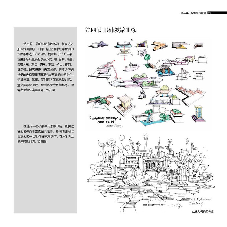 本书是一本内容丰富而实用的教学参考书,为景观设计手绘专家多年的实践经验所著,全书分为:设计手绘草图概念与认知、线型综合训练、心中透视、空间配景训练、空间综合表现等八部分,书中阐述了快速设计的草图表现的全过程,分析了各个阶段必须注意的绘制要点,并着重介绍了手绘程序、技巧和诀窍。书中附有大量精彩实例,既可以欣赏、学习,也可以参考、临摹,读者可以据此迅速提高手绘技巧。