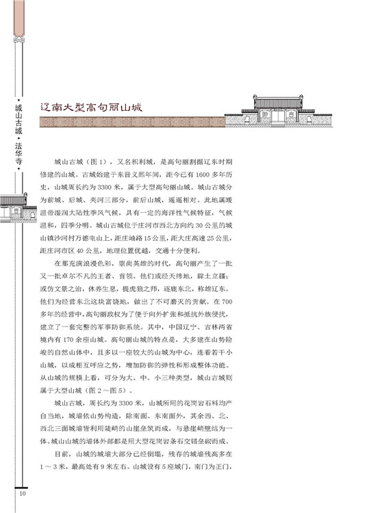 在那充满浪漫色彩,崇尚英雄的时代,高句丽产生了一批又一批卓尔不凡的王者、首领。他们或经天纬地,辟土立疆;或仿文景之治,休养生息,提虎狼之师,逐鹿东北,称雄辽东。他们为经营东北这块富饶地,做出了不可磨灭的贡献。在 700多年的经营中,高句丽政权为了便于向外扩张和抵抗外族侵扰,建立了一套完整的军事防御系统。其中,中国辽宁、吉林两省境内有 170 余座山城。高句丽山城的特点是,大多建在山势险峻的自然山体中,且多以一座较大的山城为中心,连着若干小山城,以成相互呼应之势,增加防御的弹性和形成整体功能。从山城的规模上看,可分为大、中、小三种类型,城山古城则属于大型山城。