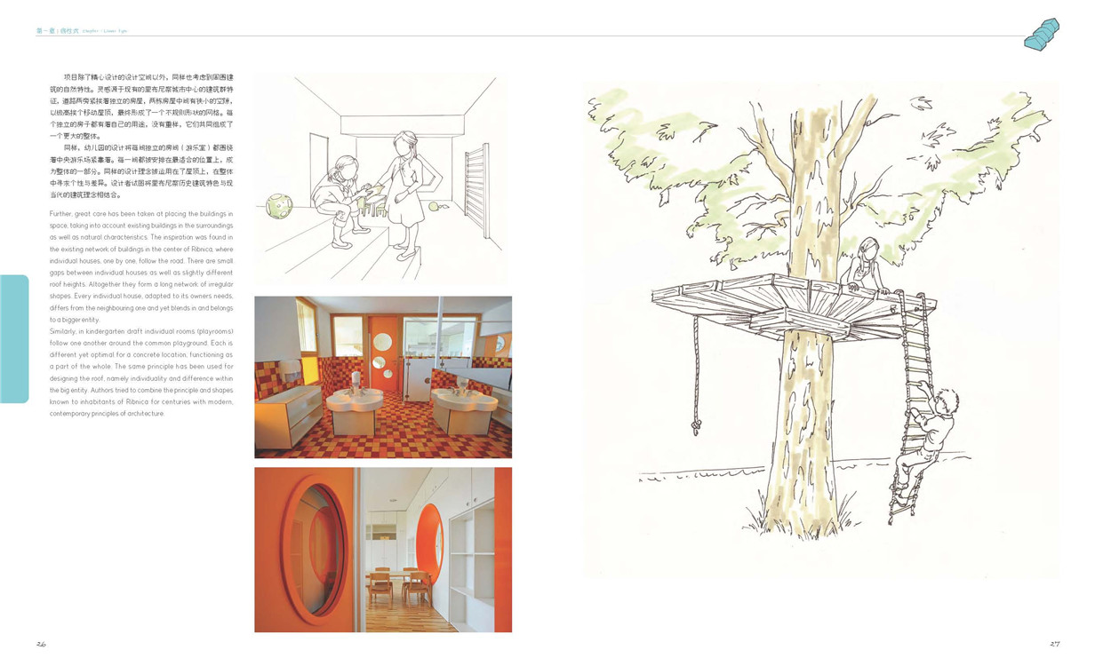 良好的学前教育不仅为人的发展奠定良好的基础,还有利于提高义务教育质量,促进社会和谐稳定发展。幼儿园不仅仅要照顾儿童的身体,还要承担起促进儿童发展、培养儿童个性的重任,使孩子将来能适应变化的社会。在这种状况下,对幼儿园建筑也会提出新的要求。因此,现代幼儿园建筑设计要想方设法创造一些趣味空间,对于那些边边角角的公共辅助空间,可以通过一些新奇的设计手法获得意想不到的空间效果。本书从幼儿园建造的选址、不同教育模式的幼儿园建筑形态、幼儿园建筑的新趋势等方面,以及近年出现的作品,来分析建筑师对这一问题的思考,其中的一些设计新趋势颇值得借鉴。