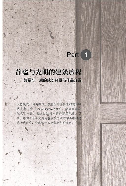 路易斯·康(Louis I. Kahn)是继赖特(Frank Lloyd Wright)之后,美国最具影响力的建筑名家之一。在相对短暂的建筑生涯中,创造出非常多的传世之作,完成设计作品的优质率非常惊人。本书不仅对路易斯·康的作品进行解读,对他本人也做了介绍,整本书由简入深,书籍结构紧凑,非常适合阅读。本书分三大部分。第一部分介绍了路易斯·康的成长背景、各阶段作品背后的构想与影响。第二部分是路易斯·康六件代表性作品的深入赏析。第三部分是路易斯·康的哲学思考,他的理论让硬梆梆的结构、建筑设备系统增添了生命力与现代性。