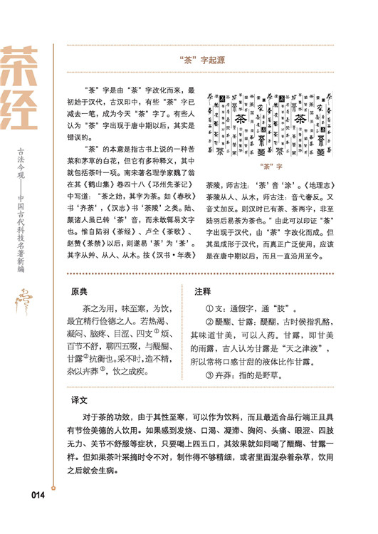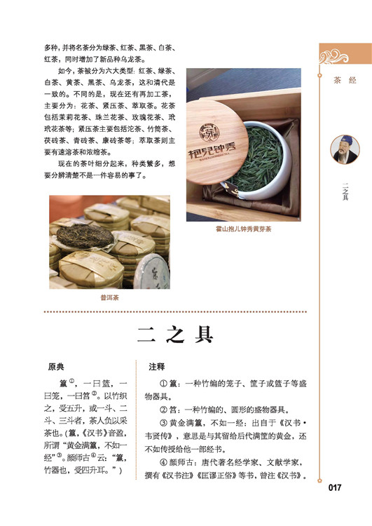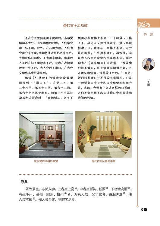 当然,和茶文化相关的古典著作不止有陆羽的《茶经》,在陆羽之后,也出现了不少阐述茶文化的作品。鉴于此,本书收录了宋代蔡襄所写的《茶录》和黄儒写的《品茶要录》,还收录了明代许次纾的《茶疏》。