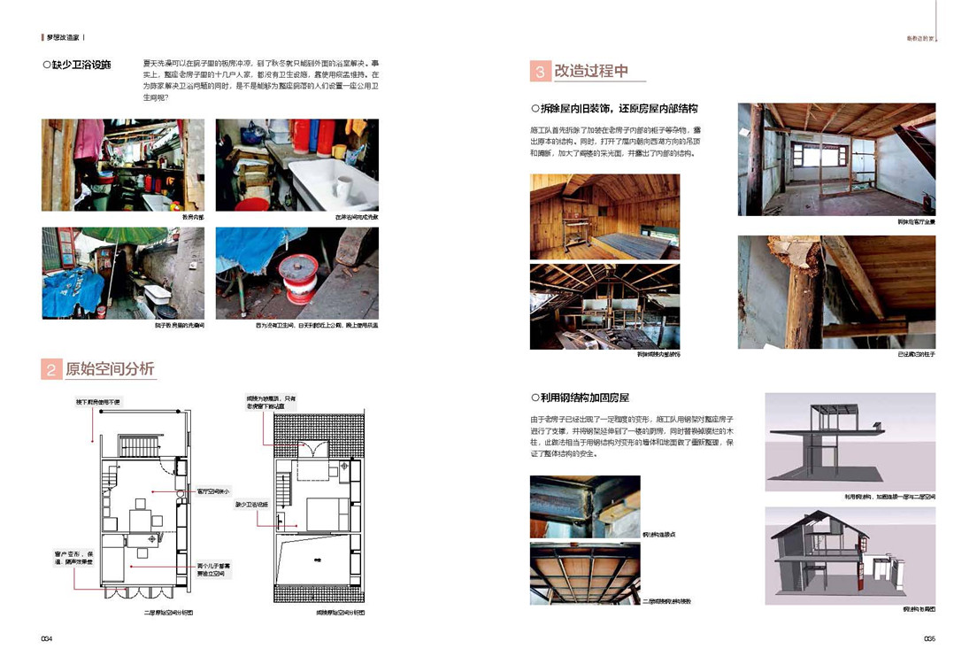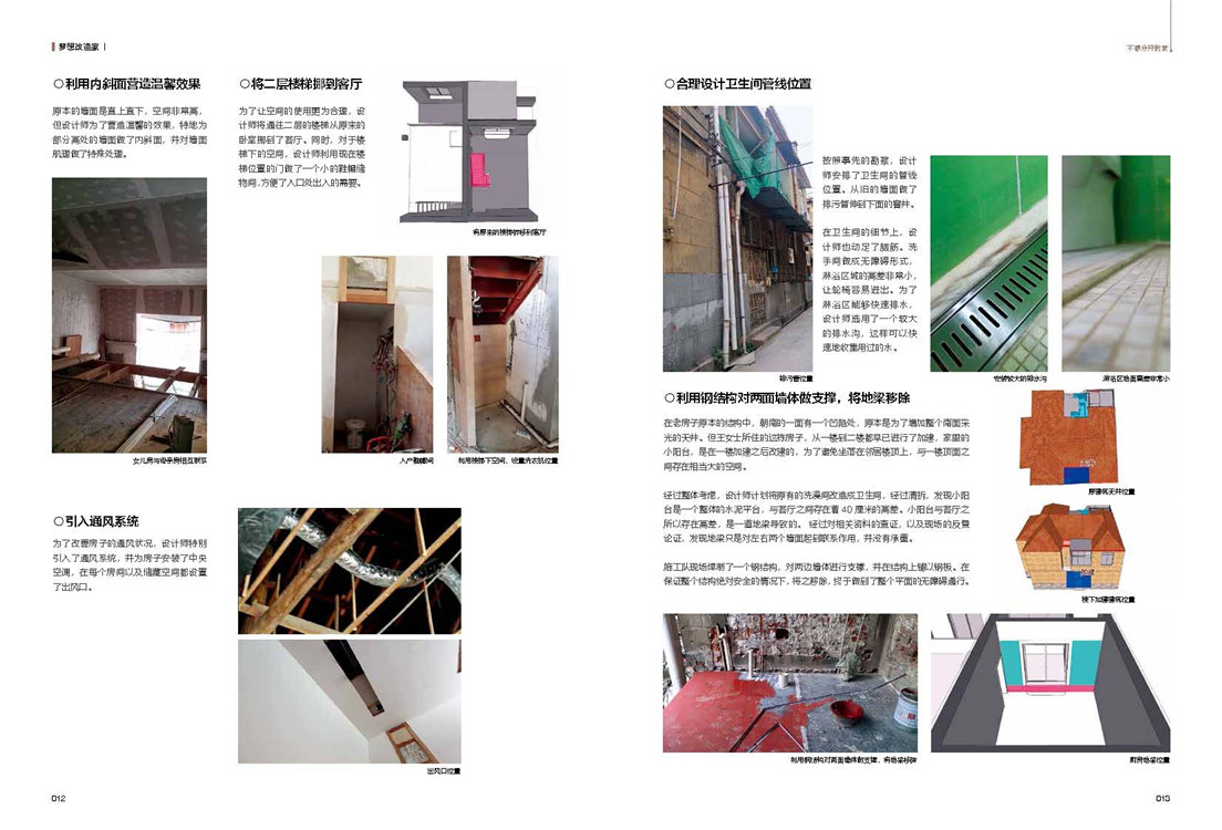 譬如在北京,针对一位高龄老人的老式平房的改造项目,设计师要为独居的老奶奶装抽水马桶时才发现,这条胡同的排污管网已经不具备这个功能,在装修预算已经用完的情况下,设计师也是自己承担所有费用,在胡同里铺设了一条长达百米的专用排污管,最终和胡同口的公共厕所相连,解决了老奶奶一辈子都没机会使用马桶的问题。当我们问他,连住户本人和他的儿子们都准备放弃这个“马桶方案”时,为什么还要坚持。设计师的回答很简洁:“我必须让老奶奶用上先进的如厕设施,因为这牵涉到人的尊严……”