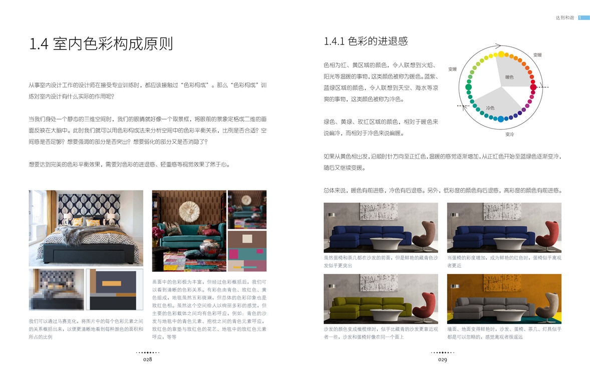 第一章从精炼的室内色彩搭配原理入手,为读者带来基于色彩科学理论之上的更为灵活多样的搭配方案。我们看到的“色彩”是一种人类特有的“感知体验”,其中视觉感知六原色:红、黄、蓝、绿、黑、白,所有颜色都可以用这六个颜色中的某些颜色去描述,因而色彩与色彩之间的关联性令色彩元素间相互呼应, 产生对话;