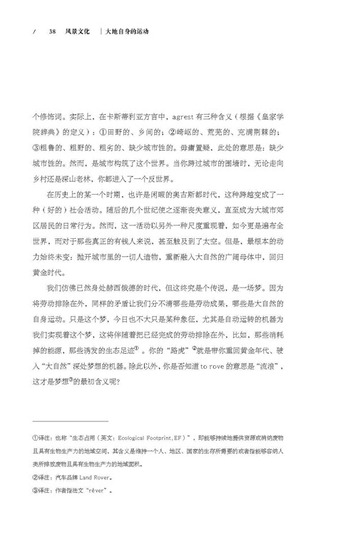 无论对于设计师,还是从事教育研究的同行,本书从一个为我们经常所忽略的角度,引发我们对“景观”概念尤其是文化景观更深层的思考,值得我们去仔细地阅读,认真地思索,特别是现代性影响下的这一代人。本书对今天正在进行的大规模城市化、现代化建设运动有着很高的理论指导意义、批判意义,能够扩展前期研究的视野,深化设计的理论深度。而无论对于建筑学、城市规划还是国内风景园林专业的学生,尤其是研究生,本书作为对景观文化学的深层阐释,具有教科书式的实用意义。今天,文化景观成为人们关注的热点,相信本书中文版的出版会引起相当高的社会反响。