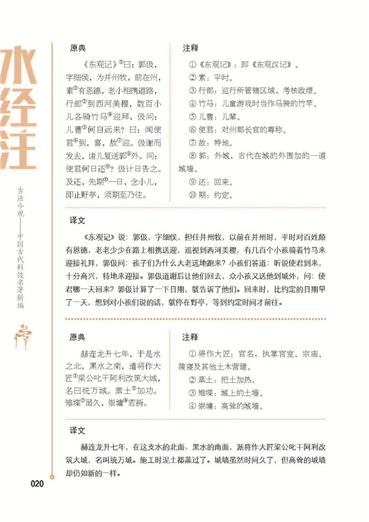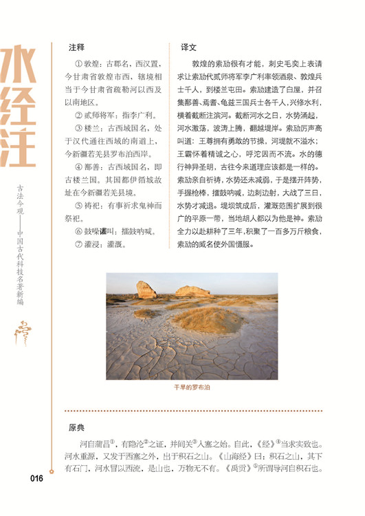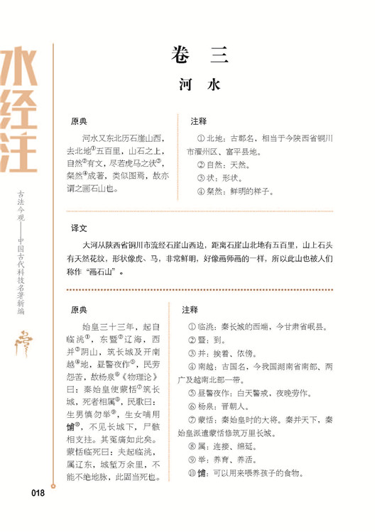 《水经注》共四十卷,但编译者并没有收录全部内容,而是将各章节与当下自然人文联系较紧密的内容进行翻译、解读,让读者能用最小的阅读量,在最短时间内领略《水经注》的魅力!此外,编译者还加入了与现代技术相关联的知识性、趣味性版块,以古朴典雅的设计风格和“有用有趣”的内文激发广大读者的阅读欲望。