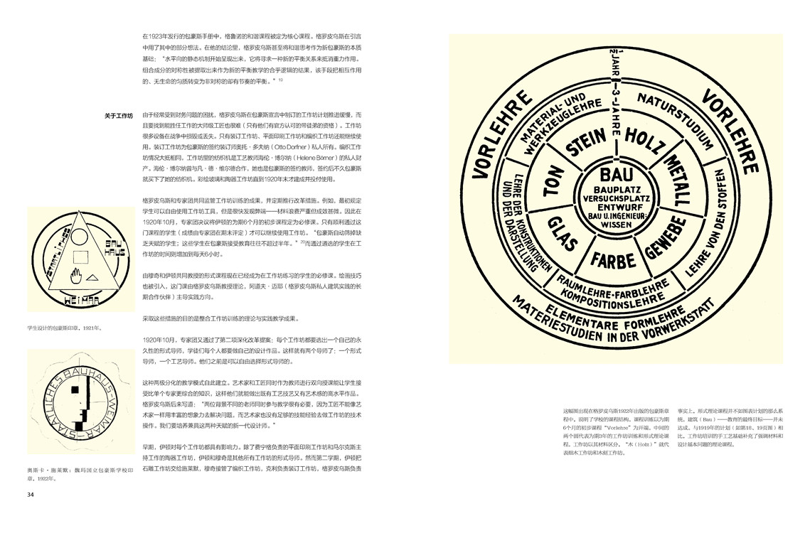 本书的作者玛格达莱娜·德罗斯特已在包豪斯档案馆和包豪斯设计博物馆从事研究多年,作为包豪斯学派的著名学者,其对包豪斯的研究是非常深入、专业的。本书以公正、客观的视角论述了包豪斯发展的历史,从包豪斯的起源、发展、重组至最终解散,向读者简明地介绍了其结构和发展历程,也全面探讨了包豪斯的社会价值以及发展过程中的各种冲突和矛盾。全书内容结构编排非常清晰、系统化,基本与包豪斯发展历程相吻合。