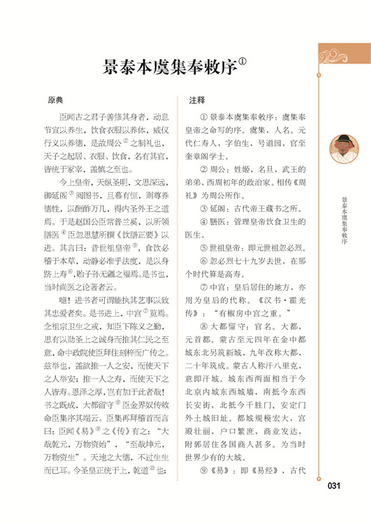 “国以民为本,民以食为天”,可见饮食对于人类的重要性。随着人们生活水平的日益提高,人民群众越来越关注营养养生,使自己生活得更健康、更长寿。“盛世食药膳,国宁人康健”,进食药膳是许多人追求健康的选择。然而新时期的药膳,只是沿用个别古代膳方,体系不赡,有些甚至尚未达到古人的药膳食用水平。《饮膳正要》是元代忽思慧所作的一部膳食专著,对当世意义显著,它能够帮助人们深入了解药膳的药用性和食用性,掌握药膳的食用方法和规律,让民众的药膳服食更科学更有效。