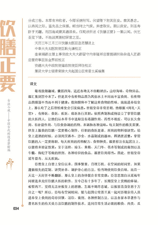本书《古法今观——中国古代科技名著新编 饮膳正要》除了保留典籍原貌,更加入了注释和译文,把原典中晦涩难懂的内容进行了现代文的翻译,使读者能够无障碍的轻松阅读,并在此基础上引入现代营养学知识,把古时一些囿于条件限制未能全面了解的知识和错误的观念进行了全面正确的阐述,使读者既能了解古人对食物营养的追寻,更能利用更先进的手段寻找出替代品和更优化的食品,使营养学知识更丰富,更能为今人强身健体、驱除疾病所用。
