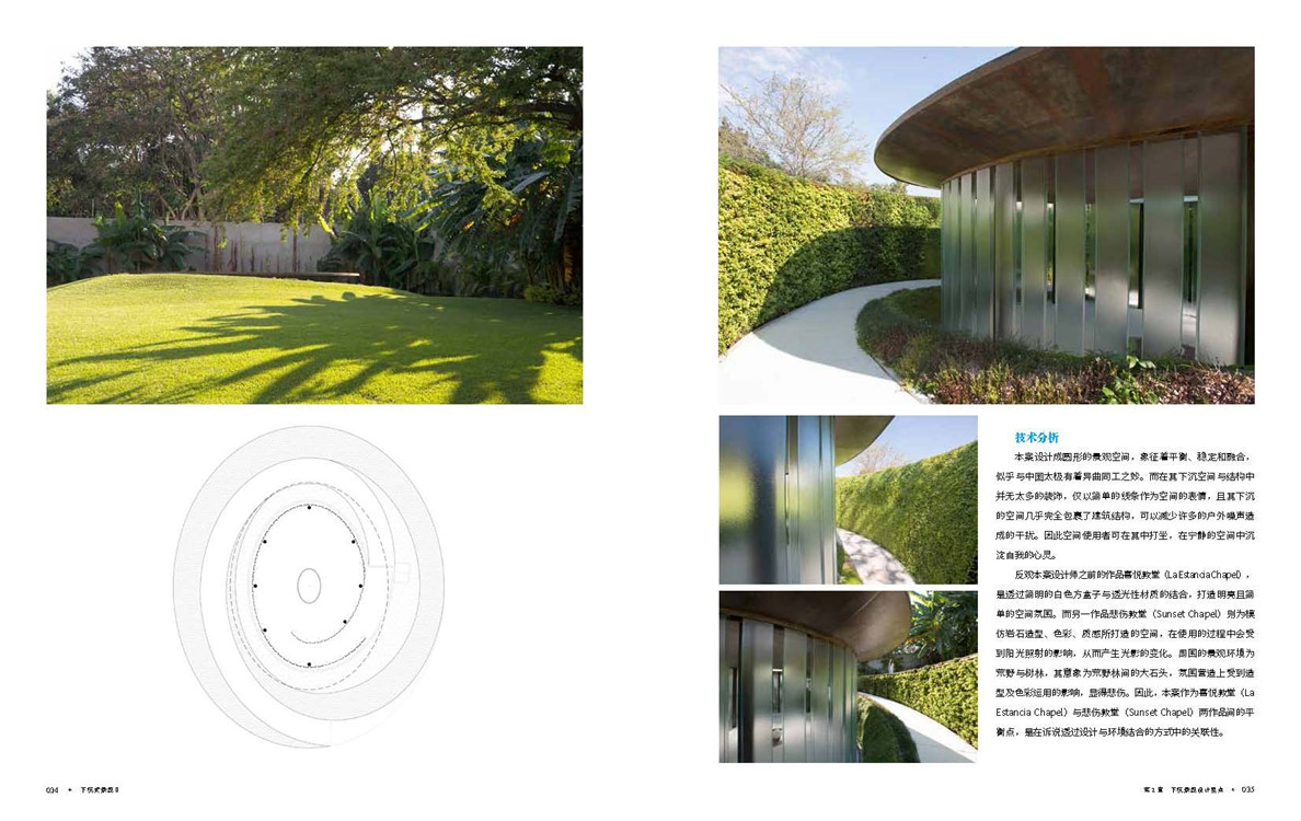 第三章讲述了下沉式景观设计的四个原则。空间尺度大小影响着下沉空间的意义和动机;层次分明能使得整个空间充满着吸引力;下沉式景观广场不仅可以方便人们,还可以为开发商带来良好的商业价值;整个下沉式景观空间,不仅需要好的设计,还需要文化背景的配合,才能相得益彰。书中的各个案例都很好地诠释着这些原则,配以设计师的详细讲解,让不管是景观设计学生,还是设计师和学者,都能从中获得设计的启发,从而设计出创新的作品。