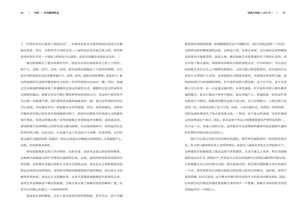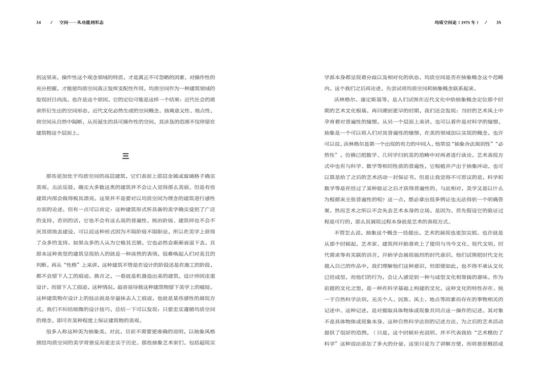 “均质空间理论”一章,像是深处谷底的一种抗议,他从在20 世纪70 年代至80 年代反复论述书写过的关于“万物皆为整体”,还有定家的诗歌、“非而非”等文章中,选择了一些相对概括的内容,融汇到本章。