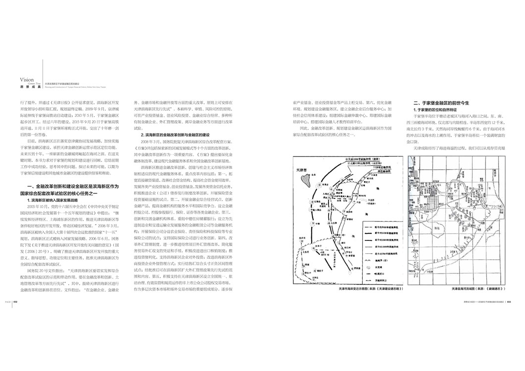 《愿景成真——天津滨海新区于家堡金融区规划建设》 在天津滨海新区被纳入国家发展战略10周年之际,滨海新区正在落实京津冀协同发展战略,加快实施于家堡金融区建设,承担天津金融创新运营示范区定位功能。未来五到十年,一座崭新的金融城将崛起在海河之滨。在这关键时期,本书力求对于家堡的规划和建设进行回顾,总结前期工作中成功经验,思考其中的问题,探讨未来的可能,以期为于家堡后续建设和其他城市金融区的建设提供借鉴和帮助。