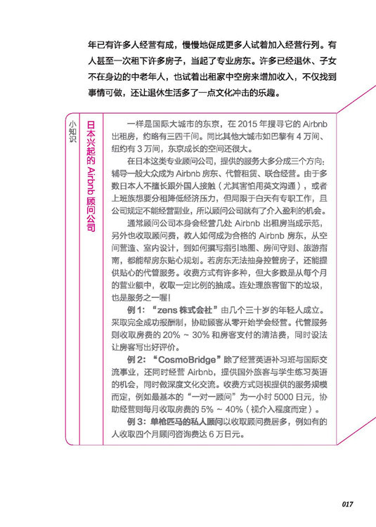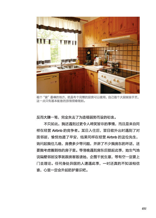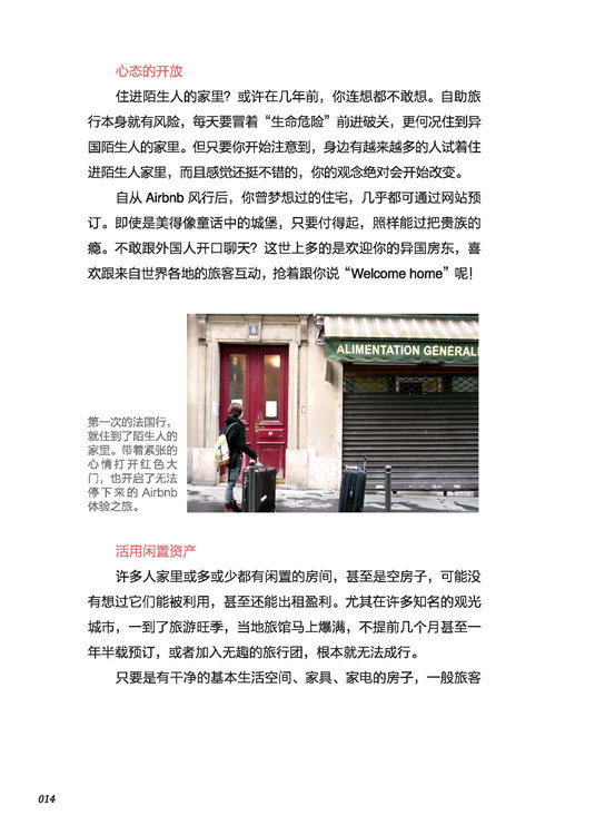 本书详细的介绍了作者使用Airbnb入住全世界陌生人家里的情况,重点介绍了Airbnb平台的使用方法,和陌生人家的入住体验,详细的介绍了自己利用Airbnb的省钱方式和其中遇到的陷阱,有利于其他使用Airbnb的人进行借鉴。后半部分还介绍了如何使用Airbnb平台出租自己房子的步骤,想赚外快的读者非常值得借鉴。