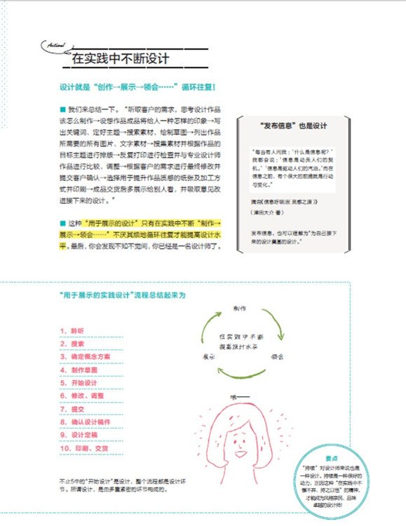通过阅读这本面向普通人的“实践设计”教程,不断重复“创作→展示→领会”的流程,相信有志成为设计师的你也能成为一名设计师!多结识朋友,多与人交流,本身也是设计。