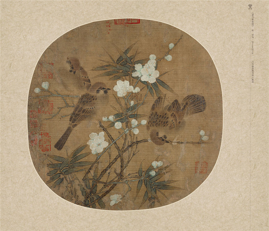 宋代的团扇是宋代院体中发展出来的具有一定实用性、装饰性、雅俗共赏的小幅绘画作品。到了后期,已经不仅仅以实用为目的,而向更具有观赏性、艺术性的装饰品靠拢,为了满足帝王赏阅的需求,团扇经拆裱制成册页形式。实物今天尚能见到,尤其是宋代的绘画作品,保存至今的有相当一部分是画在团扇上的,且不乏出自名家之手。由于年代久远,这种团扇画多为绢本扇页的形式出现。扇面入字入画,使人赏心悦目,给人以美的享受。欣赏扇面书画务须细细品味,慢慢咀嚼其中的艺术意蕴。宋代的团扇画对之后的元、明、清乃至近、现代都有深远的影响,它的意蕴、风格和技艺一直延续着其独特的魅力。时至今日,历经上千年,宋代团扇画也依然能够满足现代人的审美诉求。