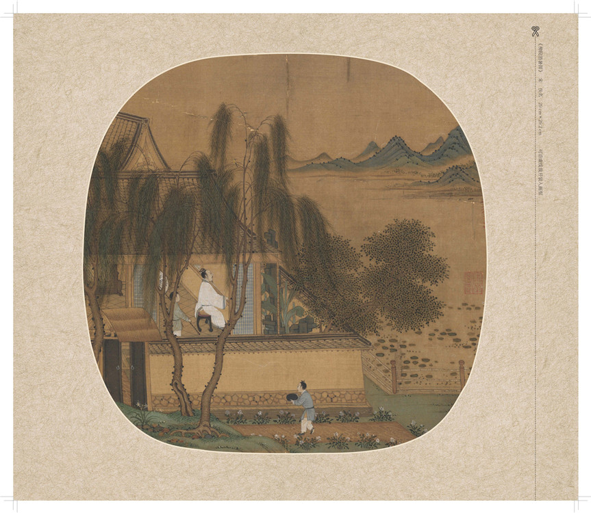宋代的团扇是宋代院体中发展出来的具有一定实用性、装饰性、雅俗共赏的小幅绘画作品。到了后期,已经不仅仅以实用为目的,而向更具有观赏性、艺术性的装饰品靠拢,为了满足帝王赏阅的需求,团扇经拆裱制成册页形式。实物今天尚能见到,尤其是宋代的绘画作品,保存至今的有相当一部分是画在团扇上的,且不乏出自名家之手。由于年代久远,这种团扇画多为绢本扇页的形式出现。扇面入字入画,使人赏心悦目,给人以美的享受。欣赏扇面书画务须细细品味,慢慢咀嚼其中的艺术意蕴。宋代的团扇画对之后的元、明、清乃至近、现代都有深远的影响,它的意蕴、风格和技艺一直延续着其独特的魅力。时至今日,历经上千年,宋代团扇画也依然能够满足现代人的审美诉求。