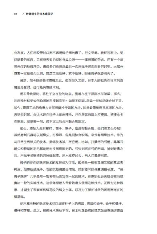 这本书是一本妙趣横生的建筑学入门书。书中收录了筑摩书房《天下无双的建筑学入门》连载与大成建筑《藤森教授恍然大悟的建筑入门》连载中的37篇文章。作者在书中分为两部分介绍了建筑学,即古代建筑的技术和住宅建筑的功能。藤森照信在书中以风趣且通俗易懂的语言详细地地讲述了日本古代建筑技术,包括对石器、捆绑技术、竹子、树上住宅、地基、柱子、草顶房屋等古代技术;第二部分则详细的讲解了包括住宅、建材、门户、地板、榻榻米、走廊、天花板、照明、窗户、厨房、楼梯、阳台、围墙、庭院等现代住宅建筑的功能。