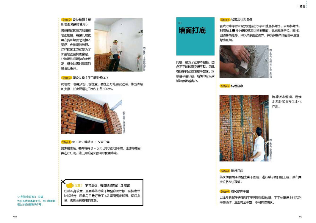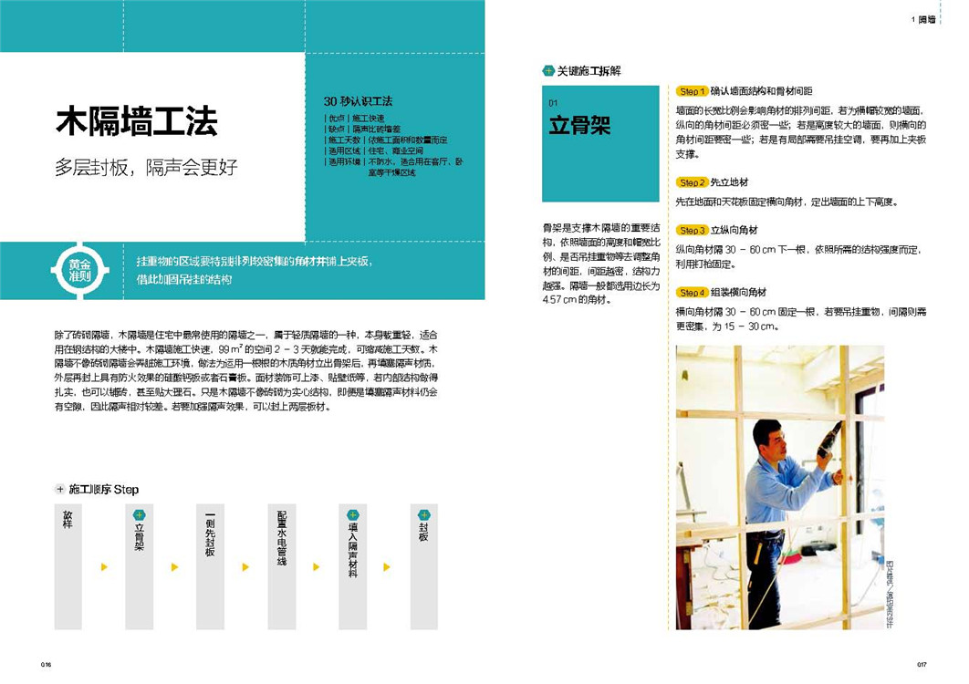 讲解工法正确步骤,列出重点步骤,施工更安心;解析不同工法差异,了解适用环境,才能对症下药;揭露施工常犯错误,警示工程常见问题,确保施工顺利;阐释材质各自特性,同种材质也有施工差异,顺应不同材质,改变施工做法。一步骤一图解,拆解基础技法,图解化施工细节,让你一看就懂,轻松搞定施工难题。