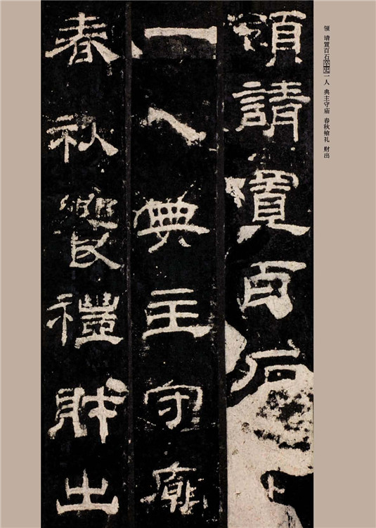 《乙瑛碑》,全称《鲁相乙瑛请置孔庙百石卒史碑》,又名《孔庙置守庙百石孔龢碑》,东汉桓帝永兴元年(公元153年)刻,原石现存于山东曲阜孔庙。 与《礼器碑》《史晨》并称“孔庙三碑”,历为书家所重。此碑记司徒吴雄、司空赵戒以前鲁相乙瑛之言,乙瑛上书请于孔庙置百石卒史一人,执掌礼器庙祀之事。此碑结体方整,骨肉停匀,法度严谨,用笔方圆兼备,平正中有秀逸之气, 是汉隶成熟期的典型作品,属方整平正一路。历代书家对此碑赞誉甚多。
