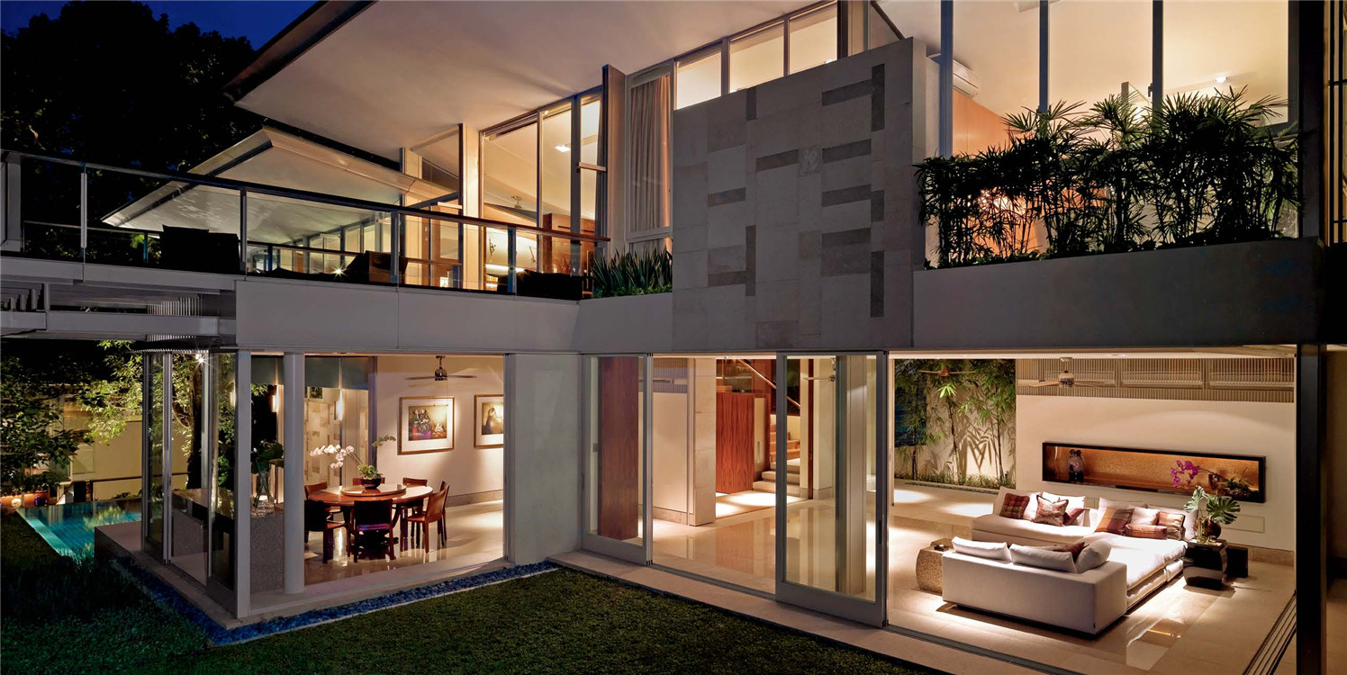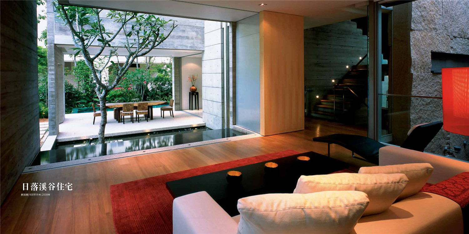 WOW 建筑事务所的作品能够和谐地融入到现代区域环境中。事务所以新加坡为实践基地,项目遍及东南亚、南亚地区,我们可以看到其作品沿袭自杰弗里·巴瓦(Geoffrey Bawa), 他是同类型建筑师的先驱。在巴瓦的作品中,我们发现了起源于洛吉耶(Laugier)原始小屋的纯粹——人、住所、自然,以及边界。如果考察现代区域必不可少的特征要素,WOW 建筑事务所的作品切实地满足了所有标准——建筑与环境的协调、室内外的融合,以及材料的本土化运用。但仔细观察发现,倡导建筑与自然间的和谐关系仍是优先考虑的,而不再是使环境浪漫化。与巴瓦作品中翠绿的热带地区和乡下破败的背景下工作不同,我们发现自己正面对的是快速发展中或是发达城市水泥砂砾的现实环境。