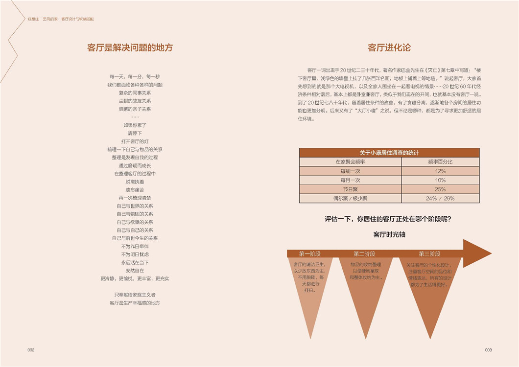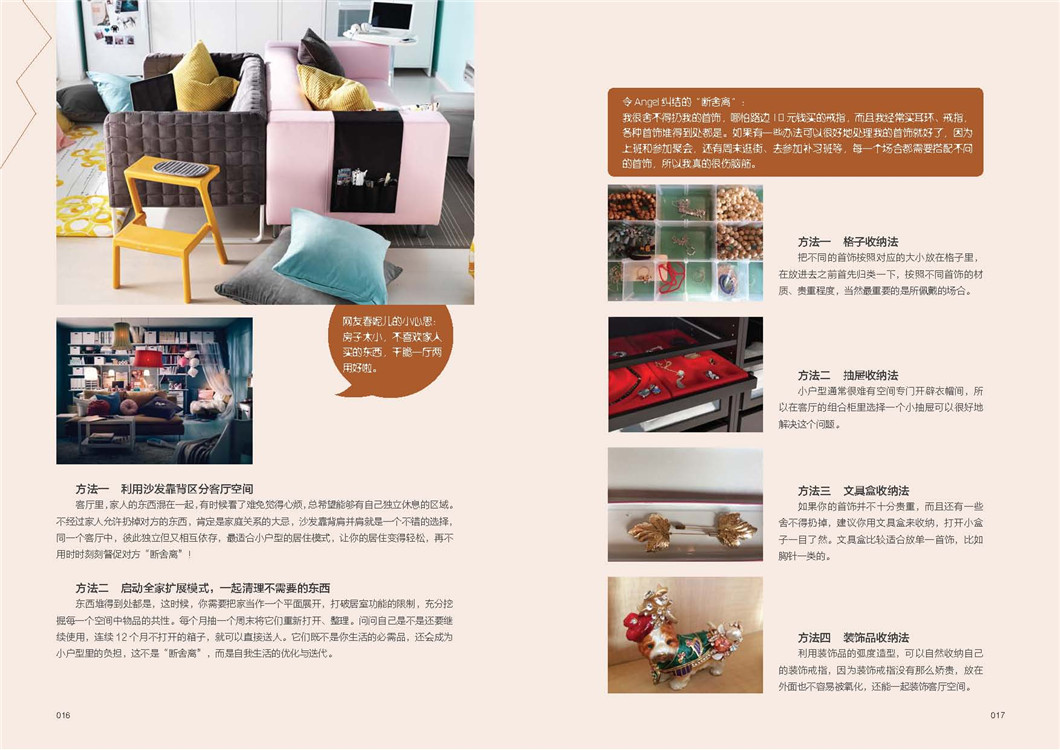 下决心整理物品对于很多人来说是一件困难的事情,“舍不得”“不敢面对”“怕麻烦”是三个主要的心理状态。其实没有轻松的整理办法,完全取决于自己的态度。这个世界上有两类人:第一类为欲望型人格,他们不断处在想要的阶段,并且会用自己的努力不断地满足自己的欲望,你也可以说他们是被欲望牵着走的人,但是这类人积极向上,不断进取;第二类为节欲型人格,他们不断处在节制欲望的状态,具有强烈的自控性,把自控变成一种自然而然的事情,并且因为自控而觉得轻松舒适,他们善于自我调节,并且将生命尽可能地简化,因此他们的物欲最弱。下决心重组客厅元素主要针对的是第一类人,而梳理与物品的关系也主要针对这群人,他们处在“客厅时光轴”的第一和第二阶段。第二类节欲型人格则处在“客厅时光轴”的第三阶段,主要需要启动生活方式的元素。那么,下决心究竟有多重要,又有多少人因为下不了决心而被困扰呢?