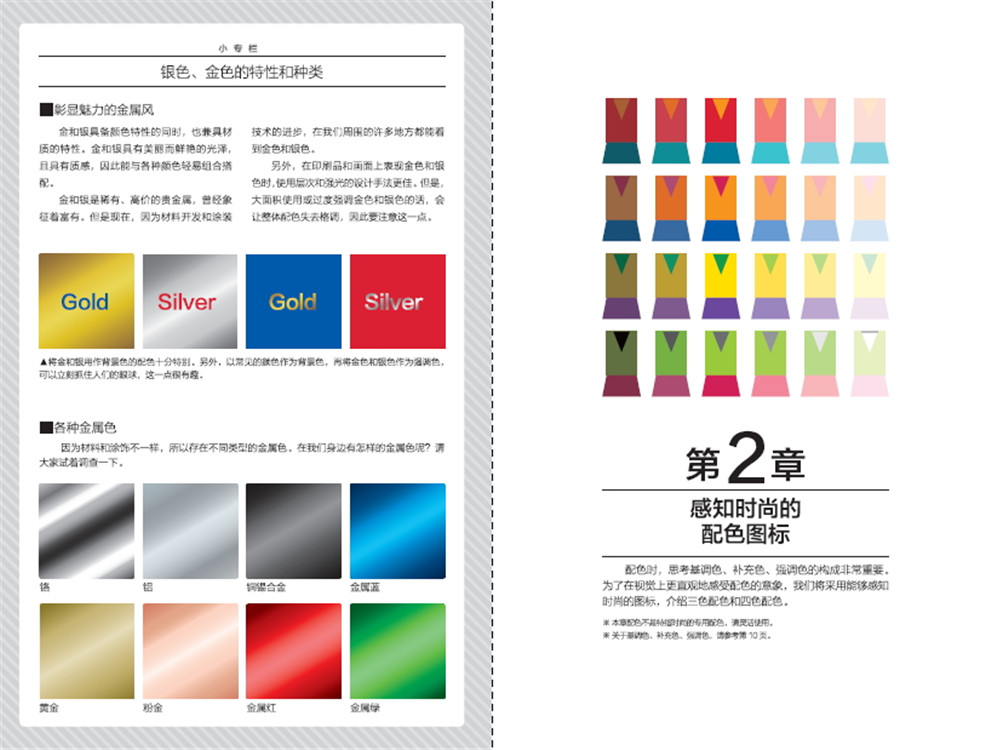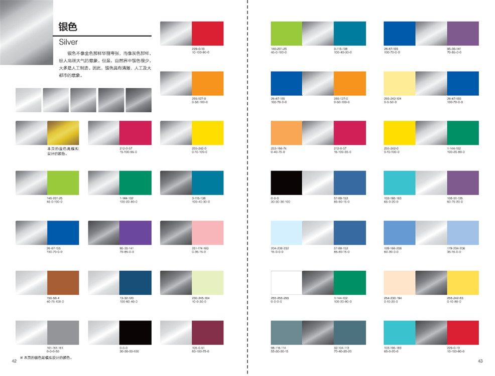 12种常用色系及两种金属色(银色、金色)的色彩搭配组合,