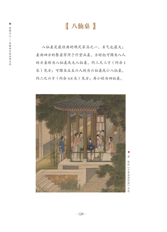 内容着重对明式家具进行了展示和欣赏:26幅传世古画梳理千年历史中的家具演变,从席地到垂足,从短见到开阔;102款上谱家具,世传经典造型,各大博物馆馆藏款式;380张多角度照片,家具正侧位高清呈现,榫卯、雕花、线角等细节特写,图片精细丰富,为读者带来一场视觉盛宴,领会中华文化的精华之美。