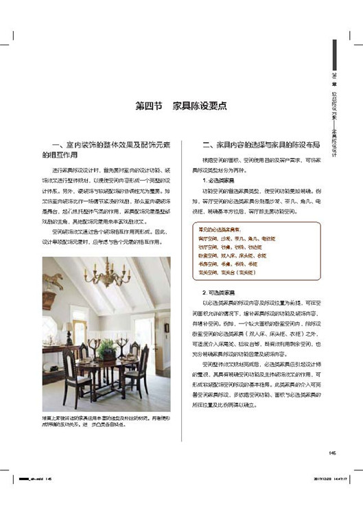为了将风格设计以更加系统的方式呈现给读者,本章下面将分为两个部分进行阐述,即“软装陈设设计风格解析”和“当代软装配饰风格的分类与特点”。“软装陈设设计风格解析”主要介绍中西方室内陈设设计的成因及特点,以及家具、织物、灯饰、画品、花品及其他陈设的发展概况。“当代软装配饰风格的分类与特点”结合当代软装配饰设计的特点及产品资源,深入解析较有代表性的装饰风格,如欧式风格、新中式风格、东南亚风格、现代简约风格等。综上,读者可了解中西方室内陈设设计的历史起源以及当代软装配饰设计风格的基本概况。