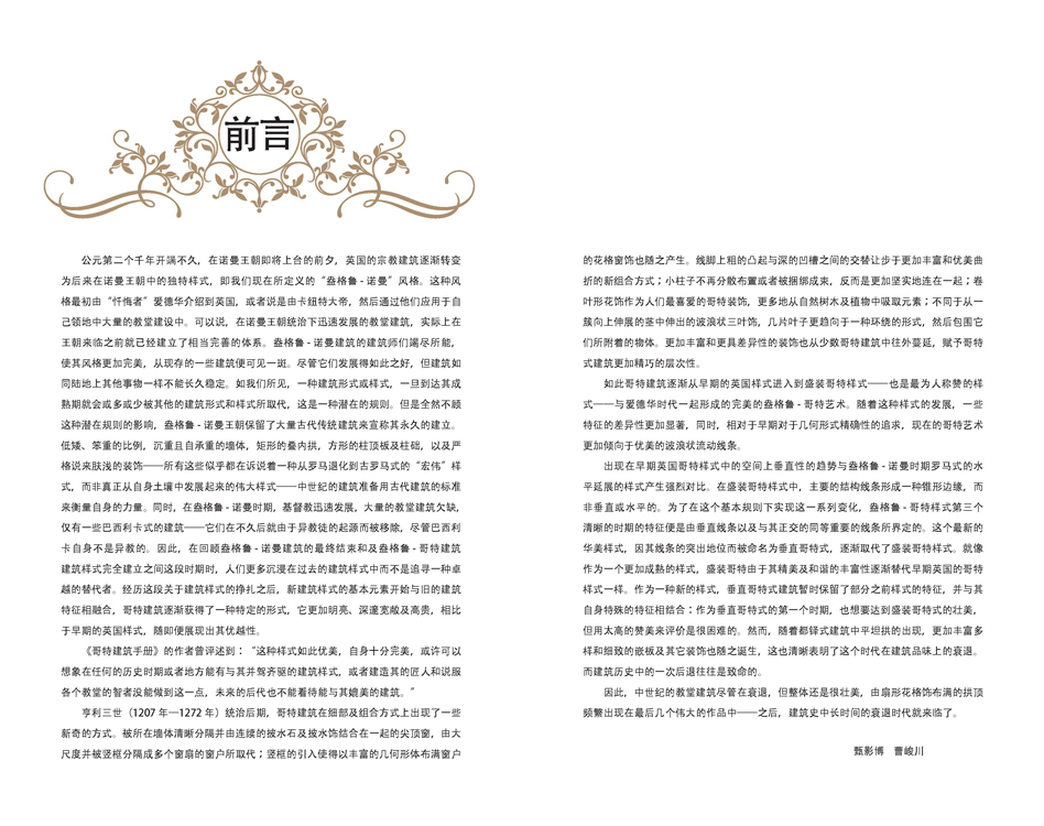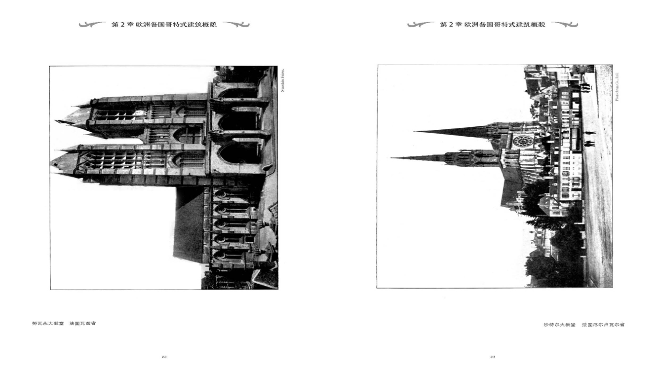 本卷共分为三个部分:第一部分对哥特式建筑的代表性构件进行简明扼要地图注式介绍,通过这几页的内容,能让读者对哥特式建筑的分类有个感性的认知;第二部分为欧洲各国哥特式建筑的概貌,收集了法国、英国、比利时、德国和奥地利、意大利以及西班牙等国的哥特建筑,每个建筑展示一张全景老照片;由于英国的哥特建筑独具代表性,第三部分用较大篇幅(约占全书的80%)展示英国各地区哥特式建筑详细图纸,这些图纸主要是建筑设计,包含建筑的整体平立剖面图,建筑特色构件的局部详图,部分图纸有完整的尺寸标注。