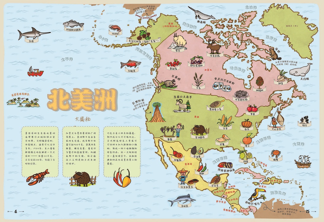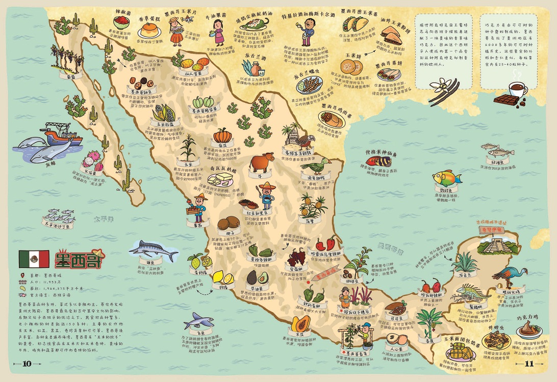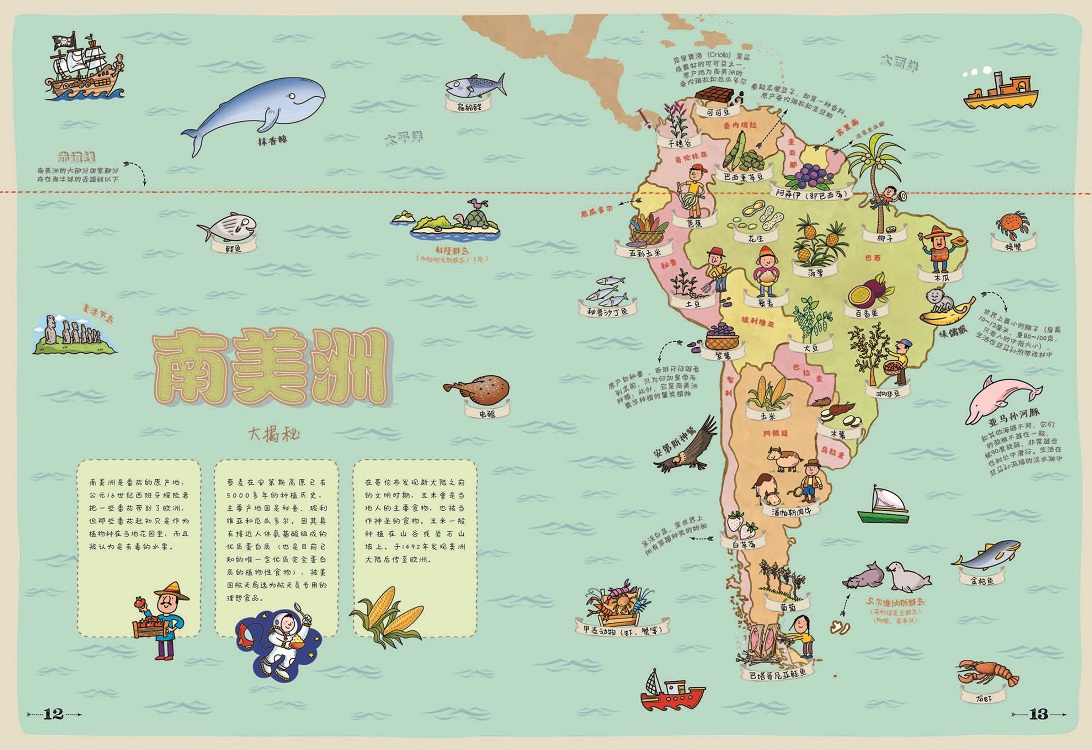 本书中食物地图介绍了全球部分国家或地区的农作物、动物、土特产及独特的美食配方。动物、植物会打破国与国之间的划分界线,你还会发现独特的美食是除国界线外,区分国与国之间的更具代表性的事物。