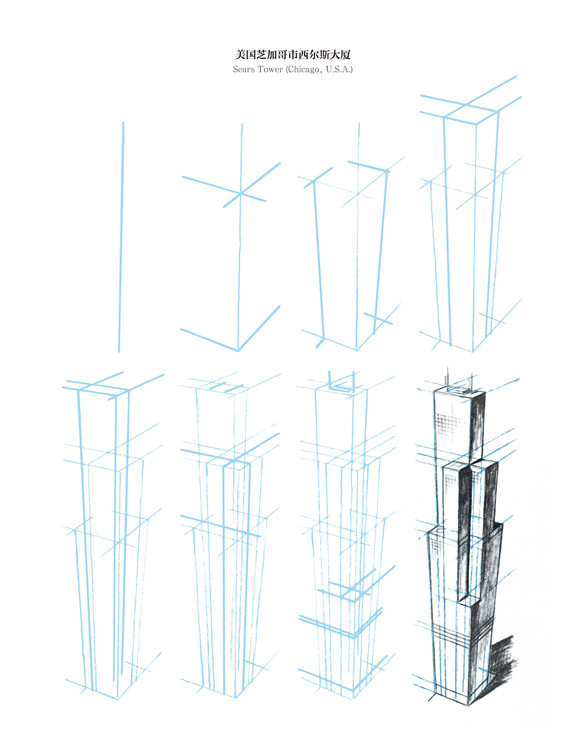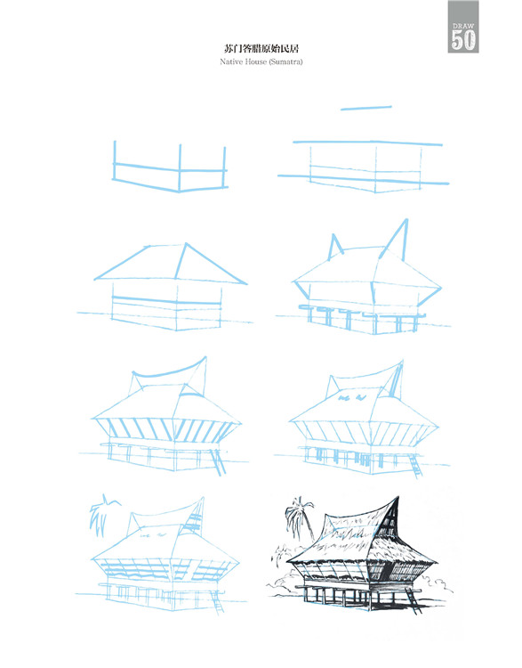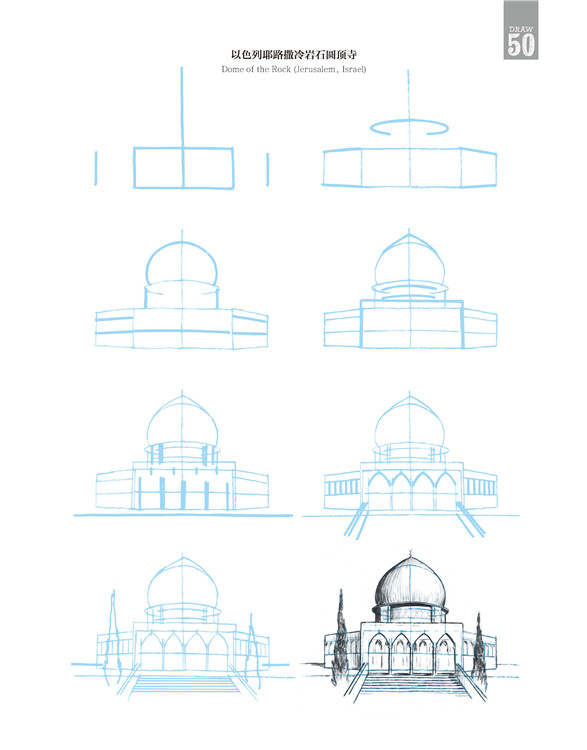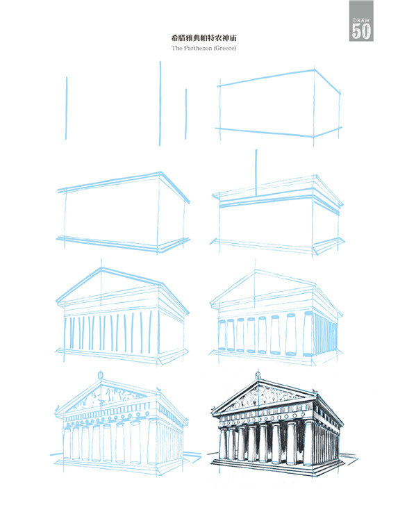 本书介绍了建筑的画法。你不需要从第一个插图开始学习,可以从任何一个你感兴趣的插图开始。当你根据喜好决定开始的插图后,可以分步骤地学习绘画方法。