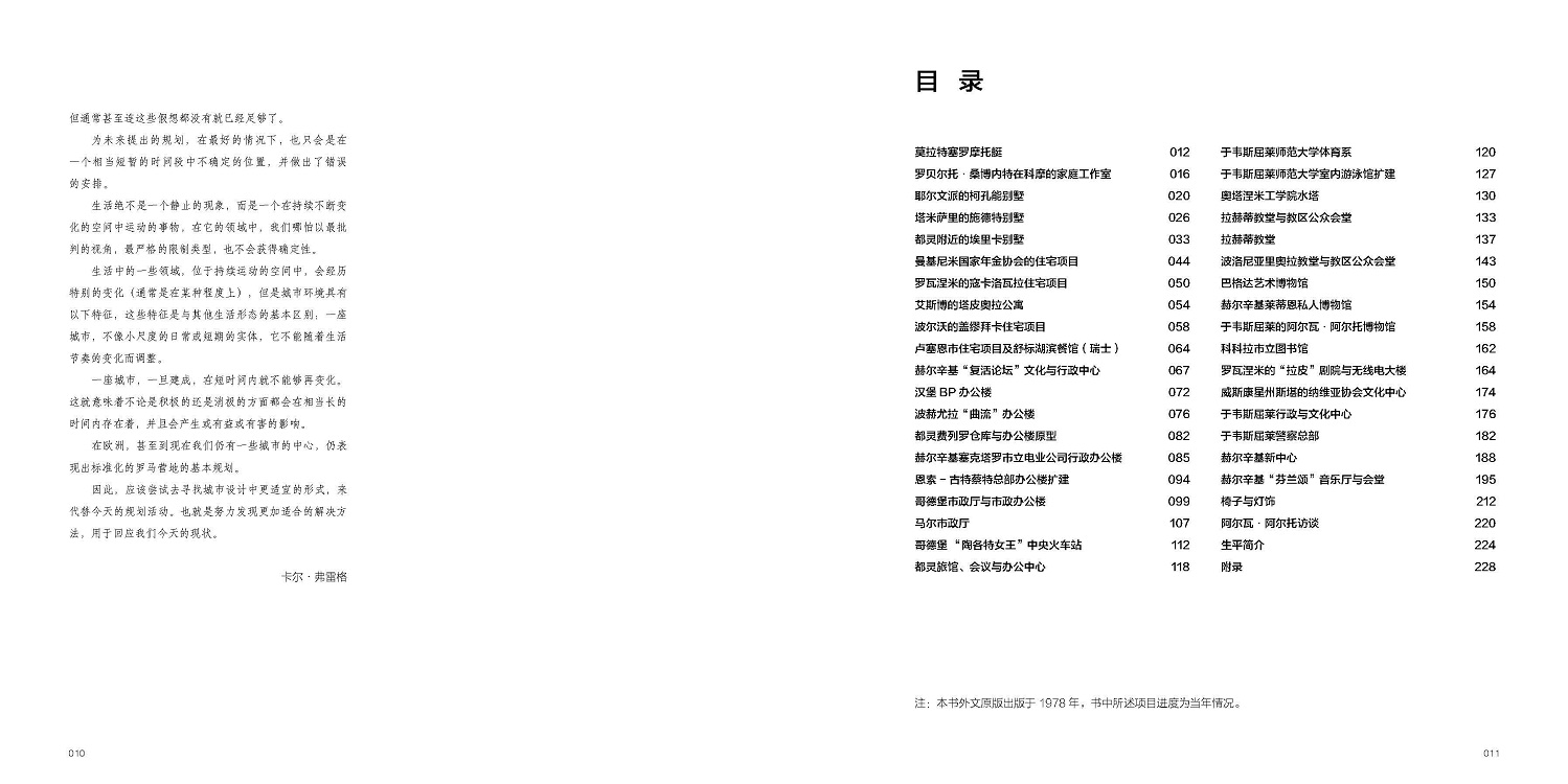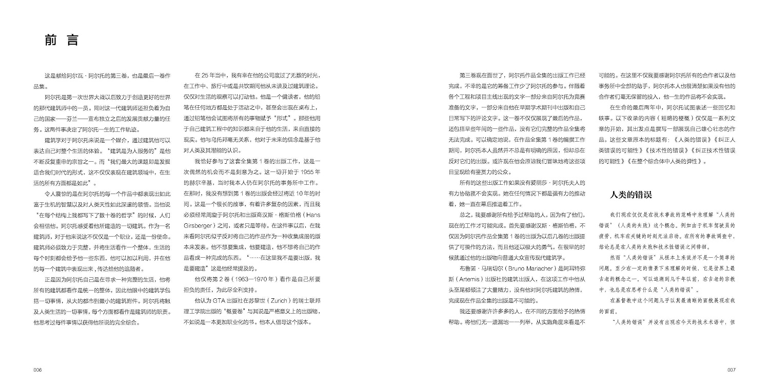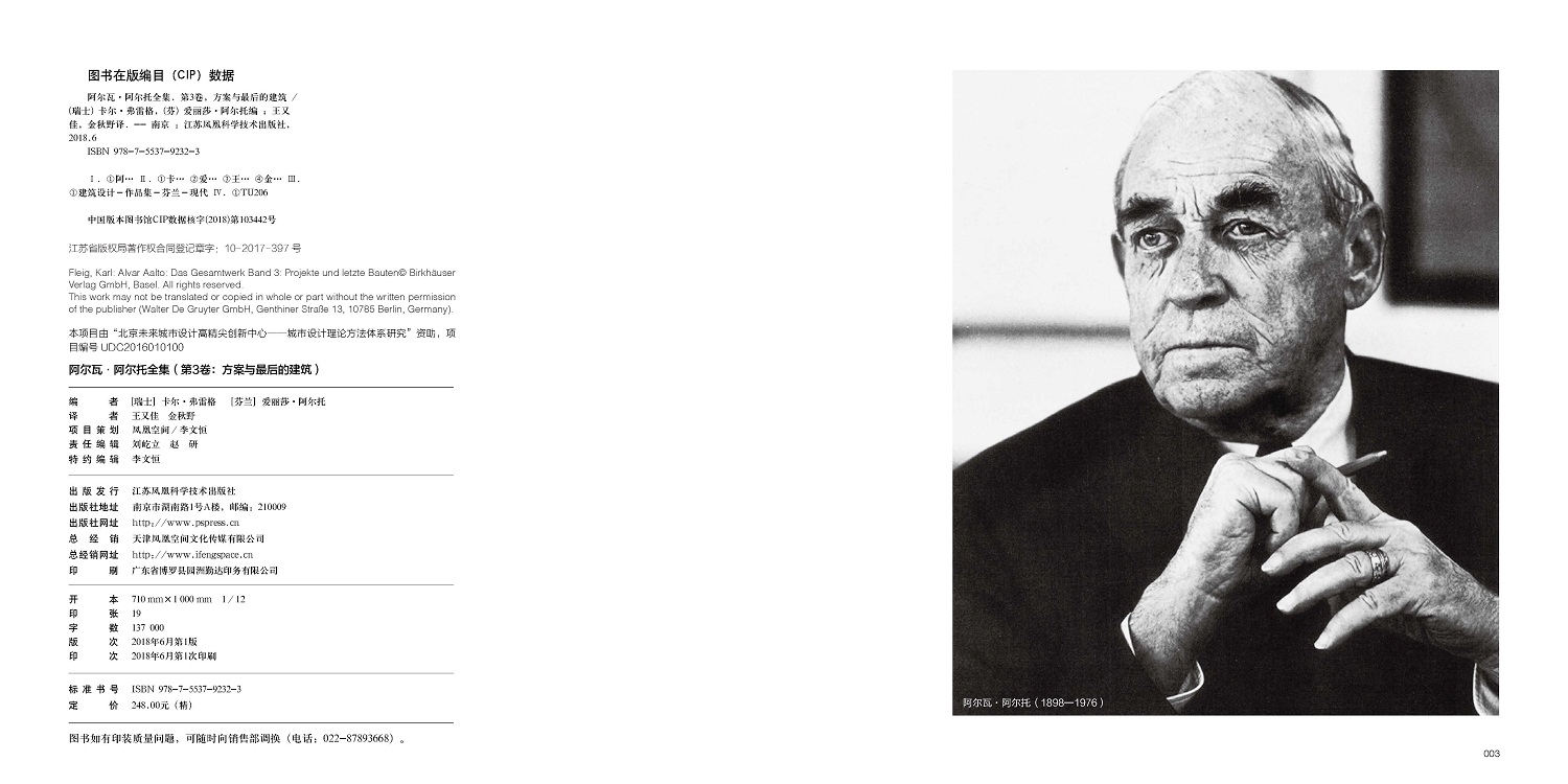本卷外文原版出版于1978年,是这位大师作品集的第3卷,也是全集中的最后一卷,不仅展现了阿尔瓦·阿尔托最后的作品,还包括了早些年的作品,没有它们就算不上完整的全集。本书中包括了一部分阿尔托为竞赛准备的文字,还有部分早期技术期刊和个人评论的文字。卡尔·弗雷格和爱丽莎·阿尔托夫人制作的这一版作品全集不仅仅展现了阿尔托最后的作品,另外还展现了阿尔托全部的成就和阿尔托本人。