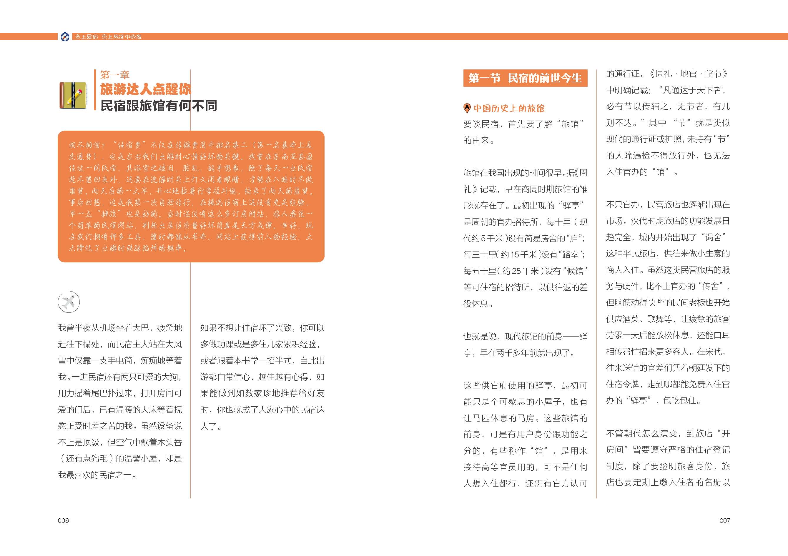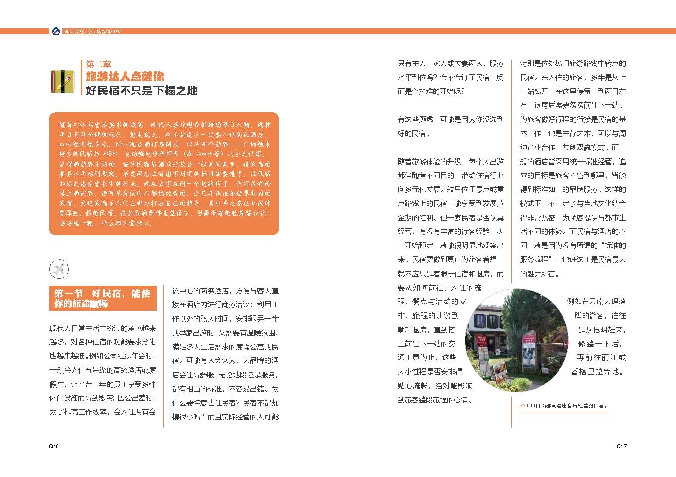 全书分为四部分,第一章表述,现在的民宿和传统意义上的旅馆,有哪些区别;第二章告诉大家好民宿应该具有的基本要素;第三章教大家如何找到心仪的民宿;第四章展示作者曾经住过的优质民宿。本书是出游的参考,民宿爱好者、民宿经营者都可以从中找到自己想要的内容。