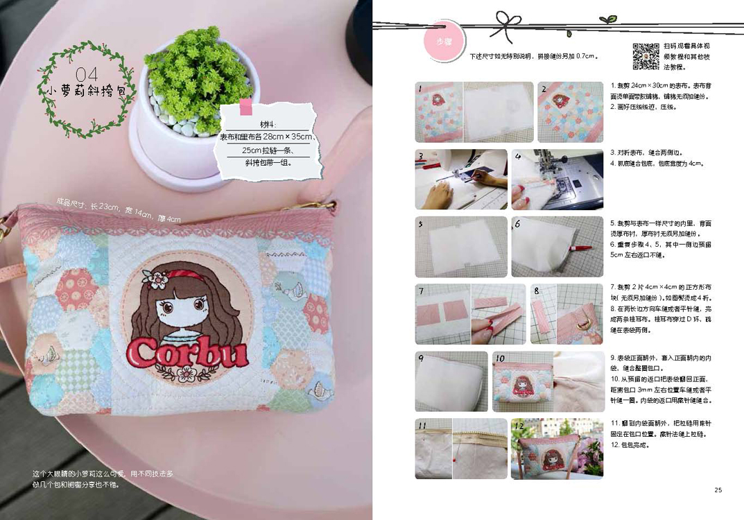本书详细介绍了拼布的基础知识以及多种风格和用途的拼布作品的缝制过程,包括拼布和缝纫的基础针法图示和讲解,图文并茂地展示了手作拼布作品的每一个步骤,并随书附赠与实物等比例的大纸型以及相应案例的视频教程链接,让缝纫零基础的人也能轻松入门,掌握拼布技巧并制作出自己的作品。