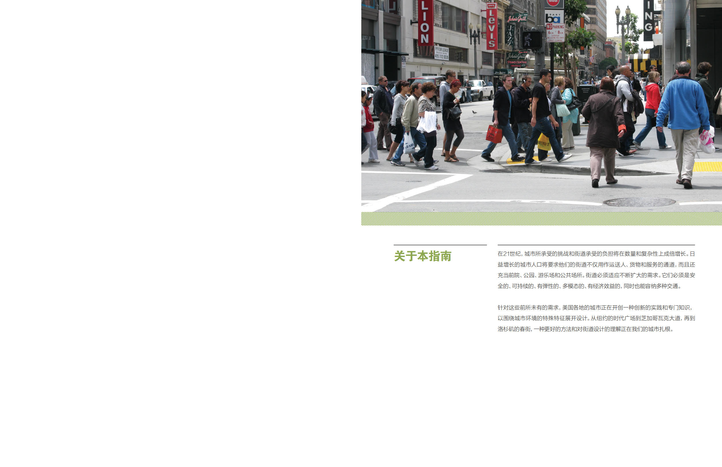 《城市街道设计指南》概述了城市街道设计的各种原则,使街道安全而富有魅力,吸引人们在城市环境中步行、购物、停留以及驾驶,这些原则旨在创造真正为人所用的城市街道空间。