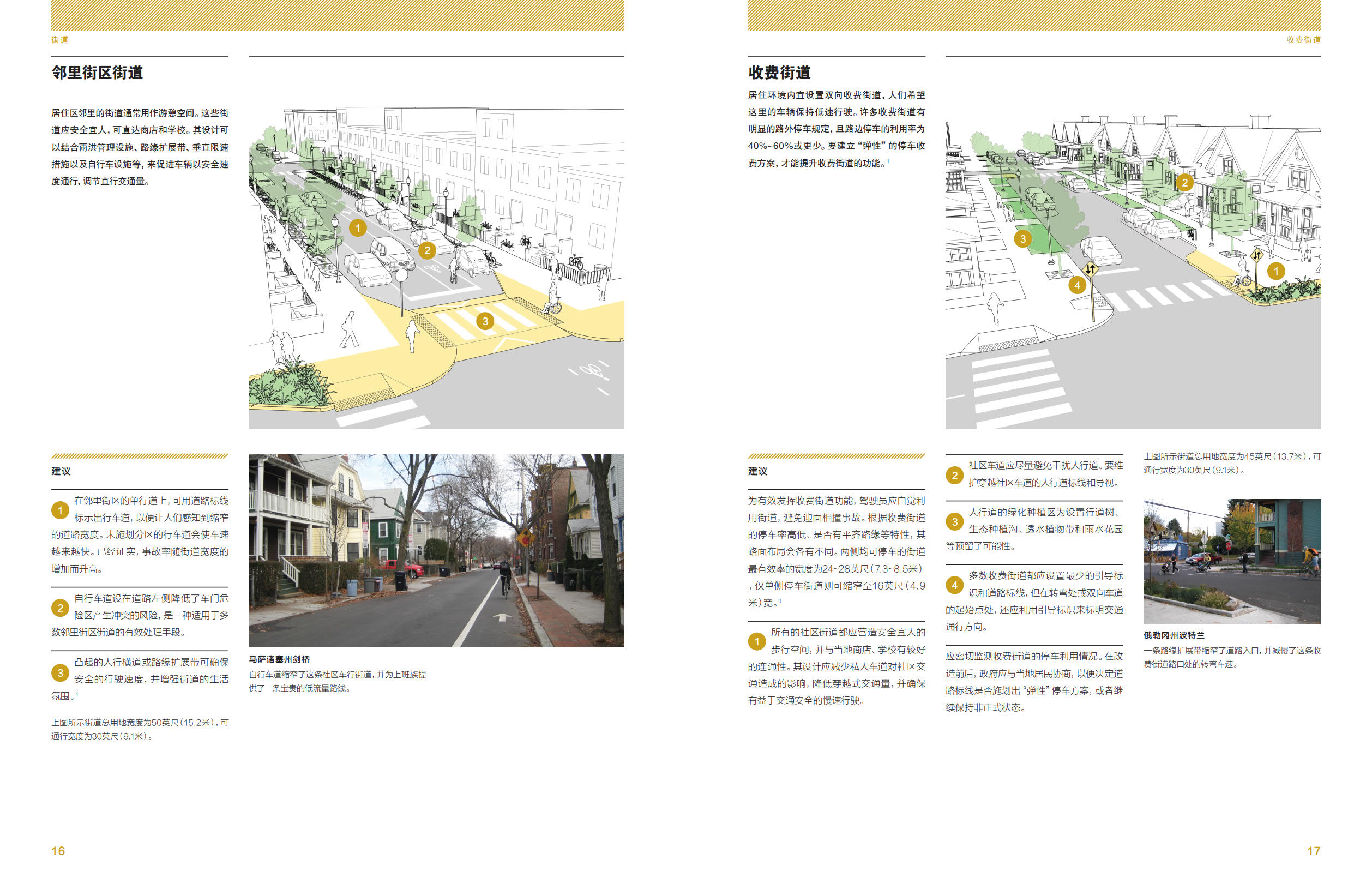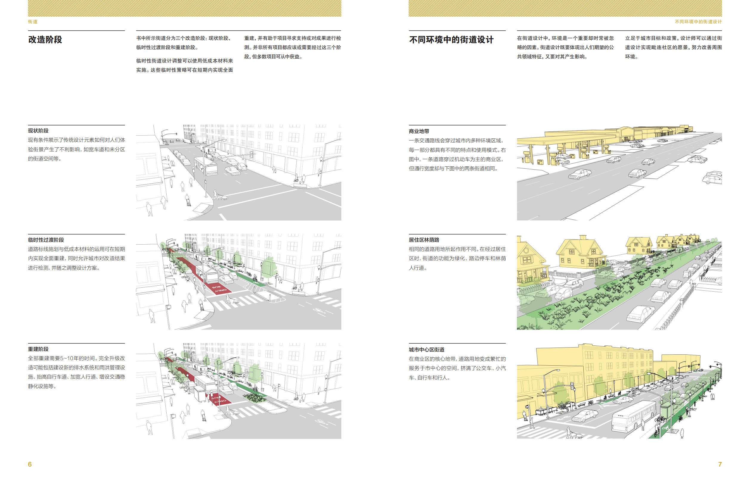 5.涵盖不同环境中的街道设计、人行道设计、公交街道设计、交叉路口设计、临时性封闭街道设计和交通信号的设置等,对国内城市街道的规划和建设极具启发性。